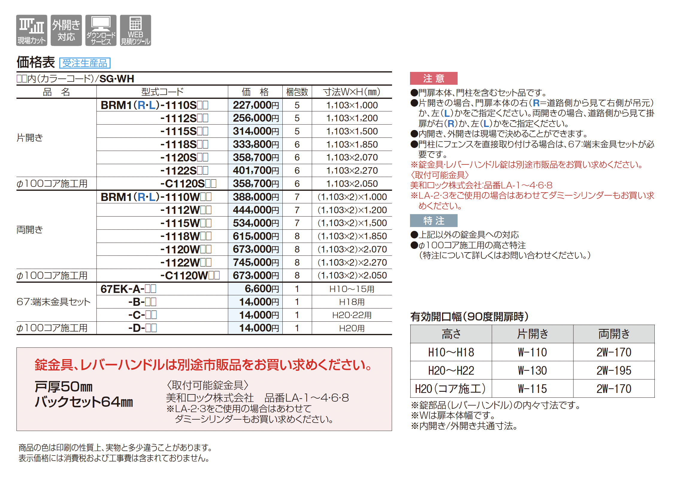 | 新旧品 | 門扉 BRM1型【2025年版】(エクステリア総合カタログ 2025年度版)門扉 BRM1型【2024年版】(エクステリア総合カタログ 2024年度版)門扉 BRM1型【2023年版】(エクステリア総合カタログ 2023年度版) |