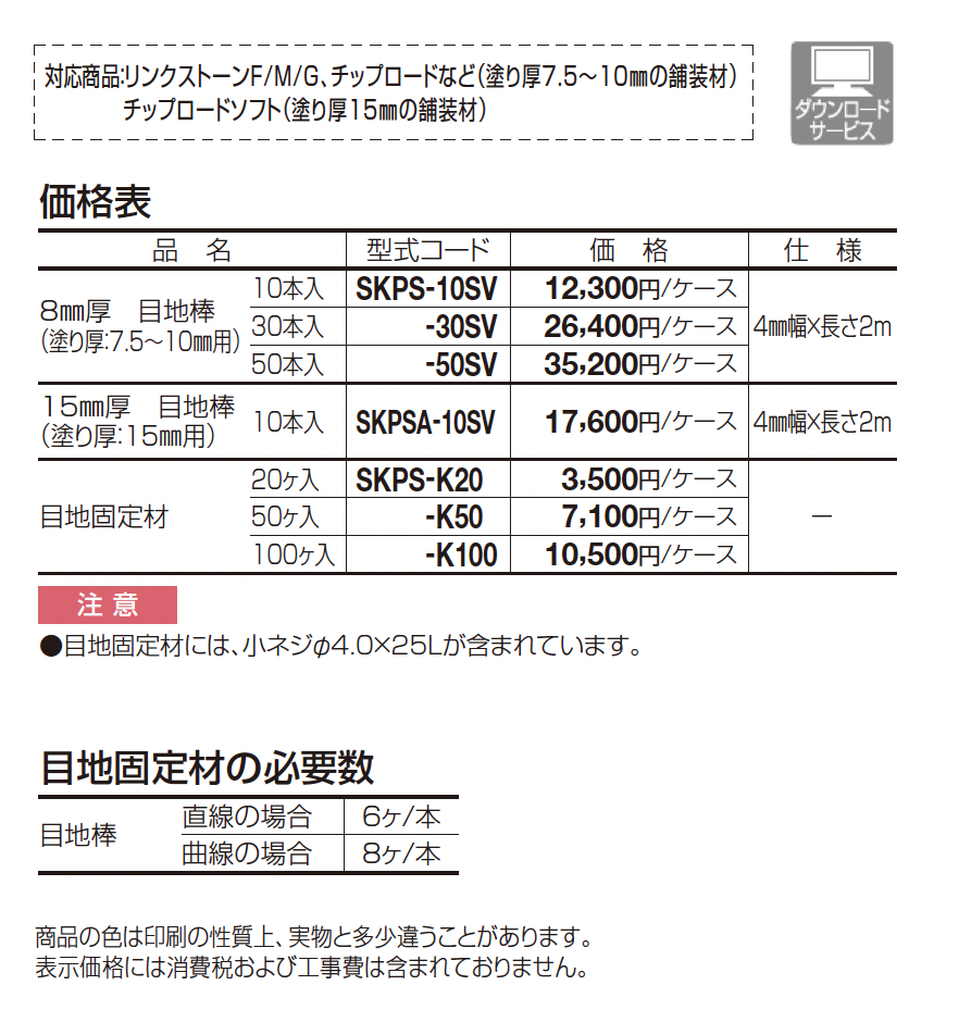 | 新旧品 | SK舗装用目地棒【2025年版】(エクステリア総合カタログ 2025年度版)SK舗装用目地棒【2024年版】(エクステリア総合カタログ 2024年度版)SK舗装用目地棒【2023年版】(エクステリア総合カタログ 2023年度版) |