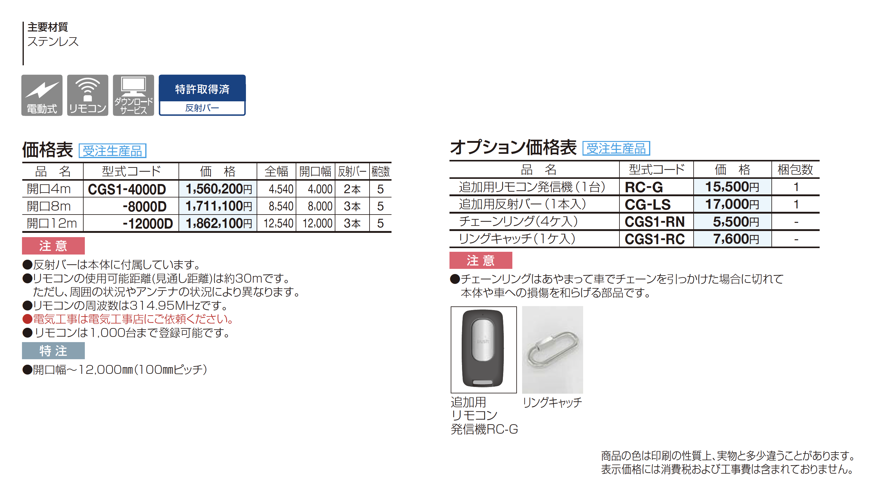 電動チェーンゲートS1型(ステンレス)【2024年版】(エクステリア総合カタログ 2024年度版)