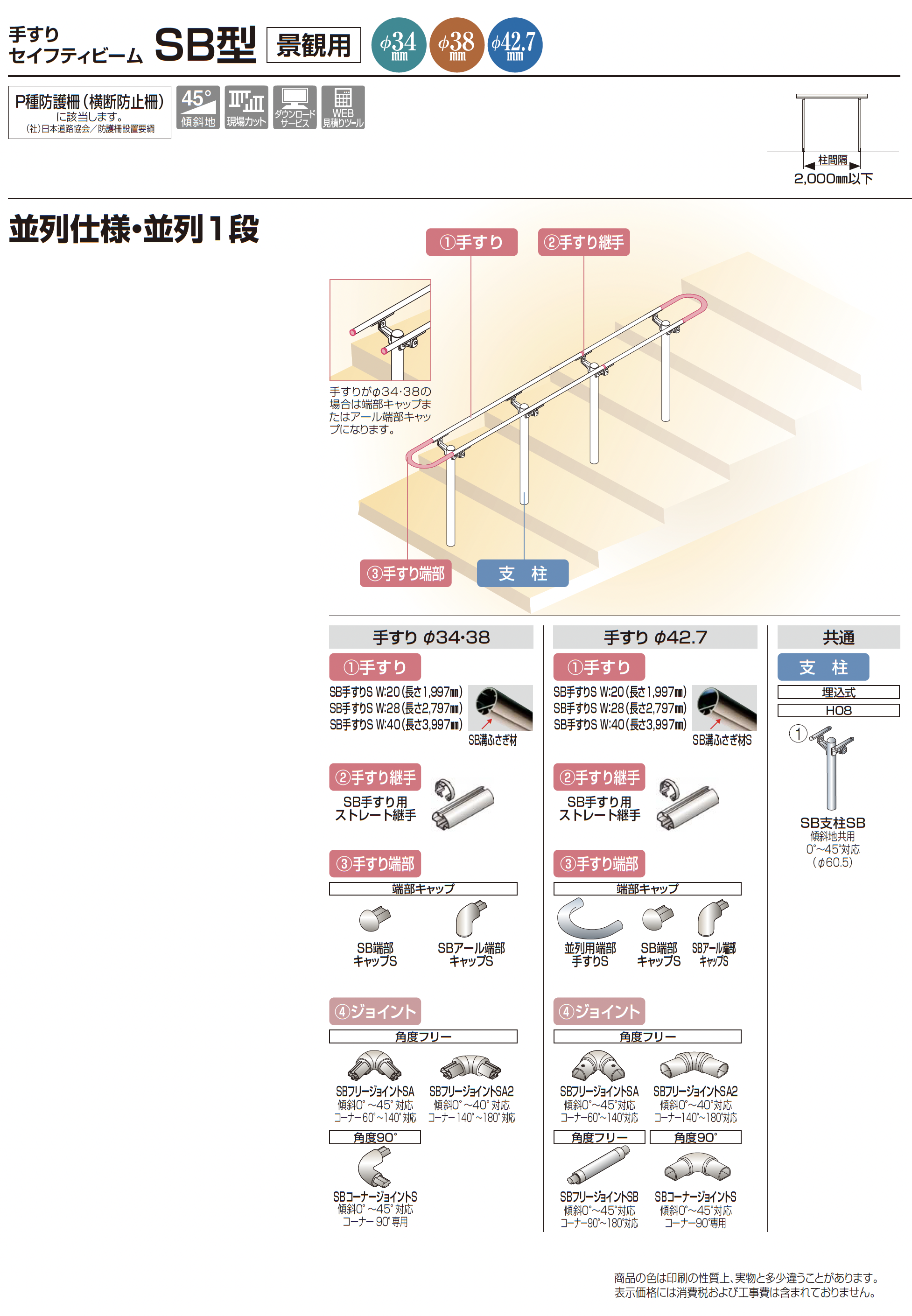 手すり セイフティビーム SB型 (景観用 ステンレスタイプ)並列仕様・並列1段【2023年版】(エクステリア総合カタログ 2023年度版)