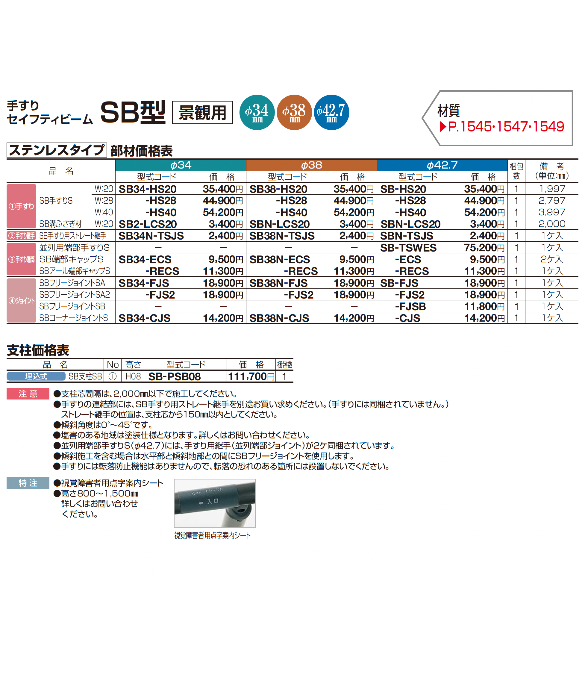 手すり セイフティビーム SB型 (景観用 ステンレスタイプ)並列仕様・並列1段【2025年版】(エクステリア総合カタログ 2025年度版)