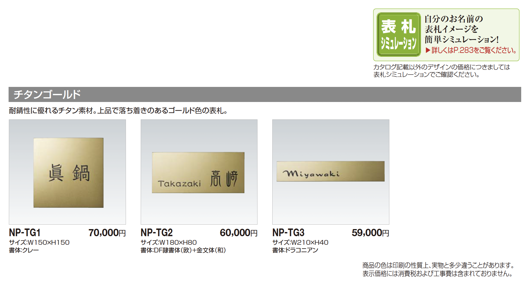 | 新旧品 | 表札(チタンゴールド)【2025年版】(エクステリア総合カタログ 2025年度版)表札(チタンゴールド) 2024年6月発売【2024年版】(エクステリア総合カタログ 2024年度版) |