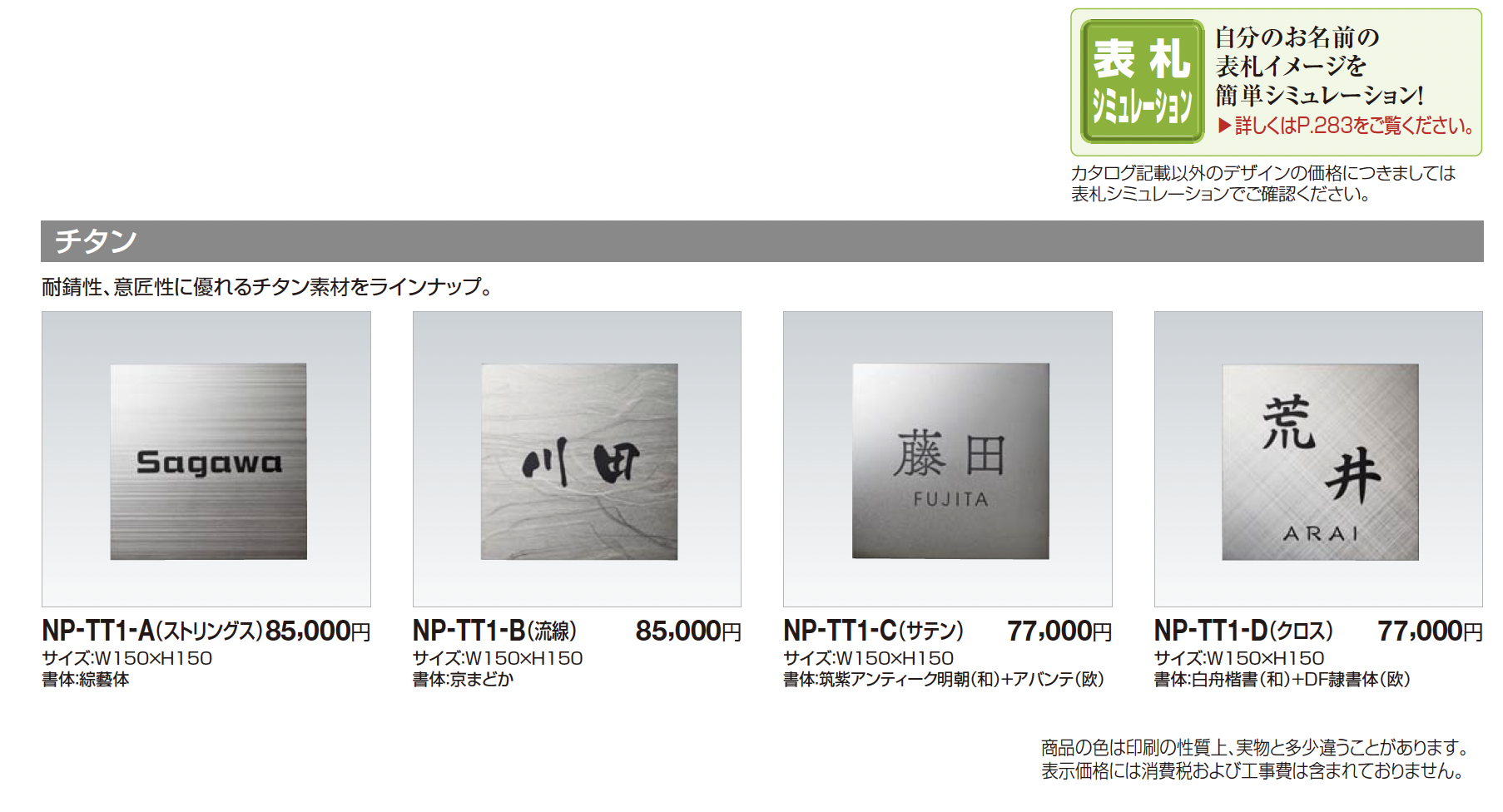 | 新旧品 | 表札(チタン) 【2025年版】(エクステリア総合カタログ 2025年度版)表札(チタン) 2024年6月発売【2024年版】(エクステリア総合カタログ 2024年度版) |