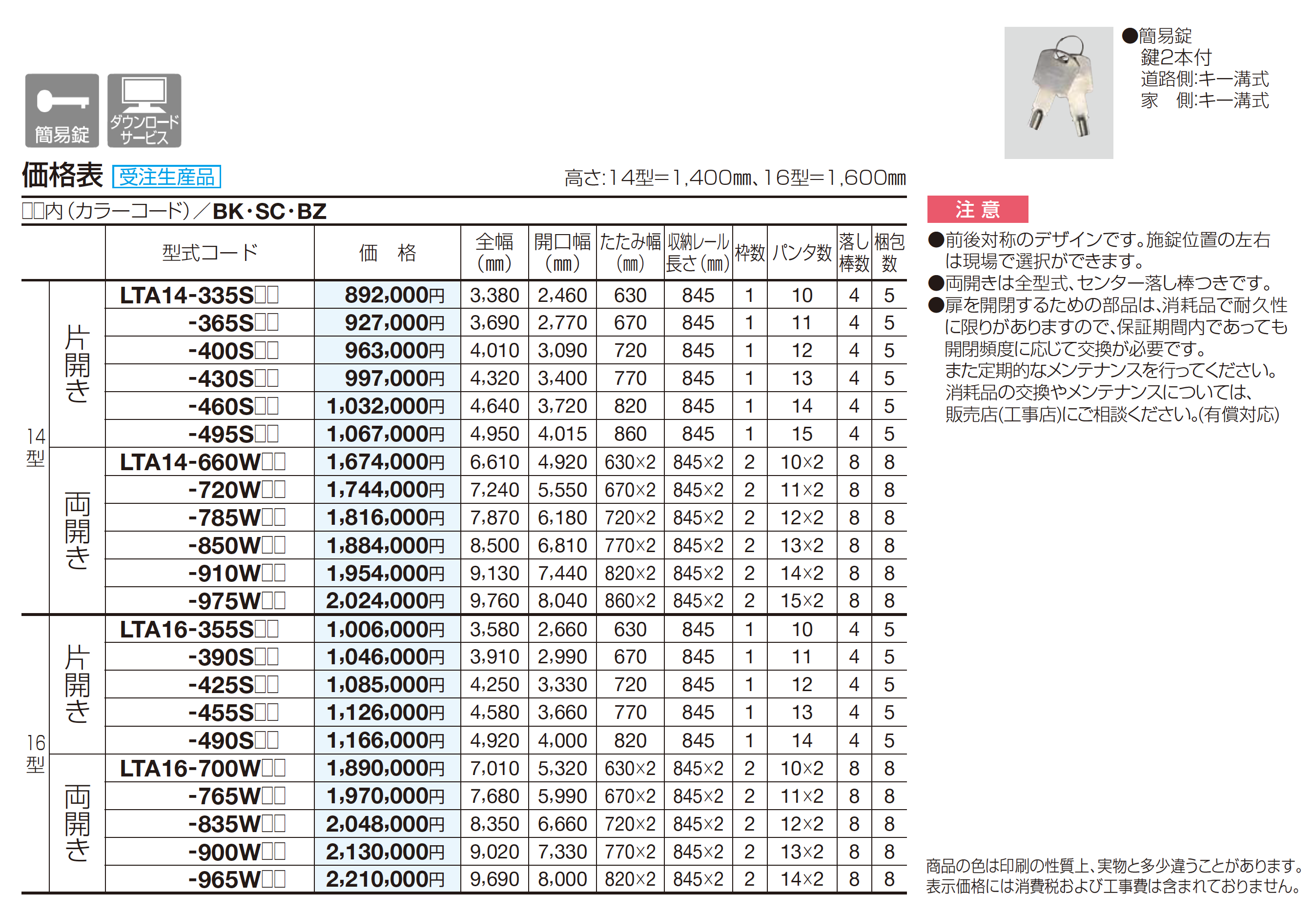大型リフティングアコー14型/16型(ノンレールタイプ)【2024年版】(エクステリア総合カタログ 2024年度版)