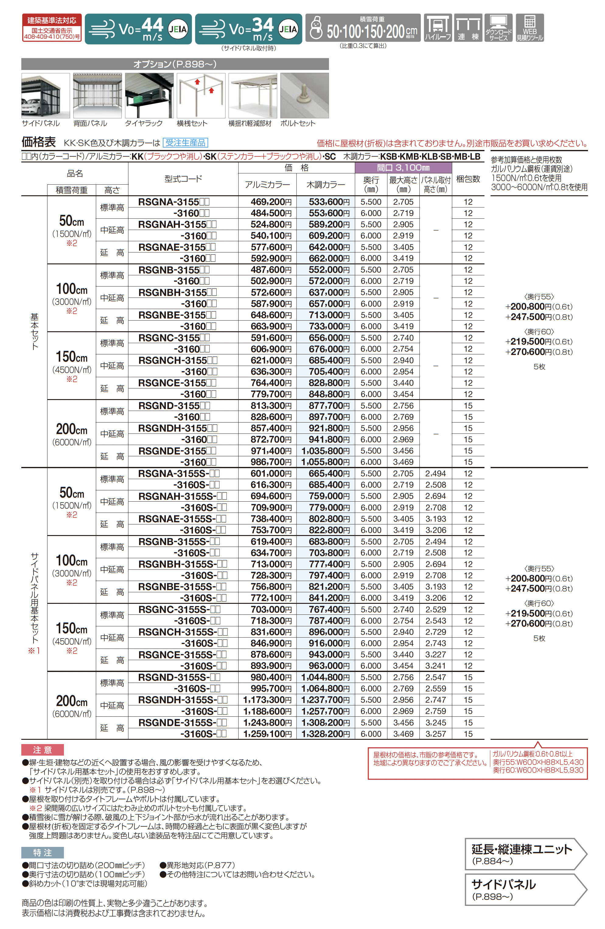 | 強度 | 積雪荷重50・100・150・200cm相当 風速Vo=44m/s 風速Vo=34m/s |