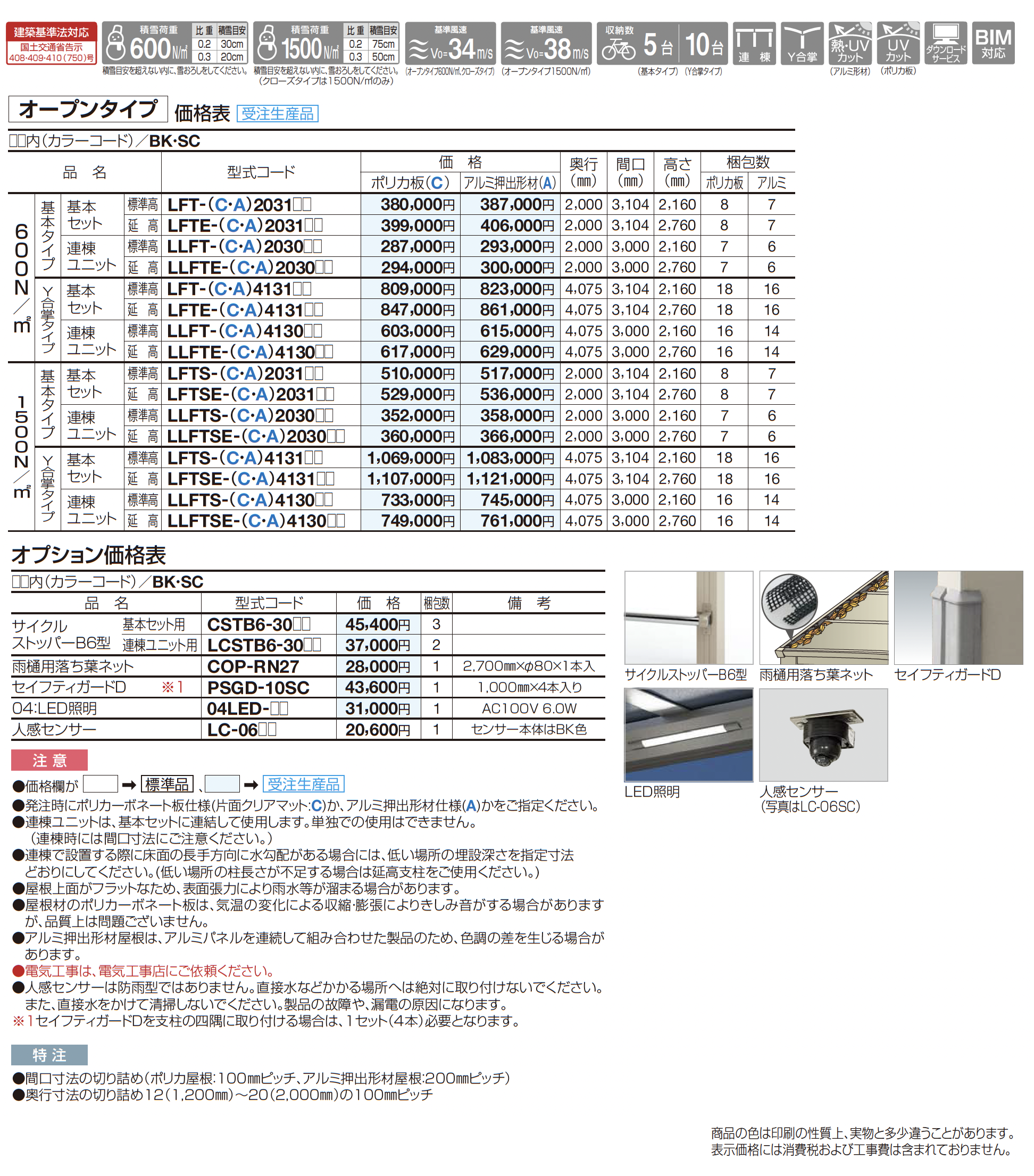 | カラー | BK:ブラックつや消し SC:ステンカラー A:アルミ押出形材(不燃材)(ステンカラー) C:ポリカ板(クリアマット) ポリカ板(片面クリアマット) |
