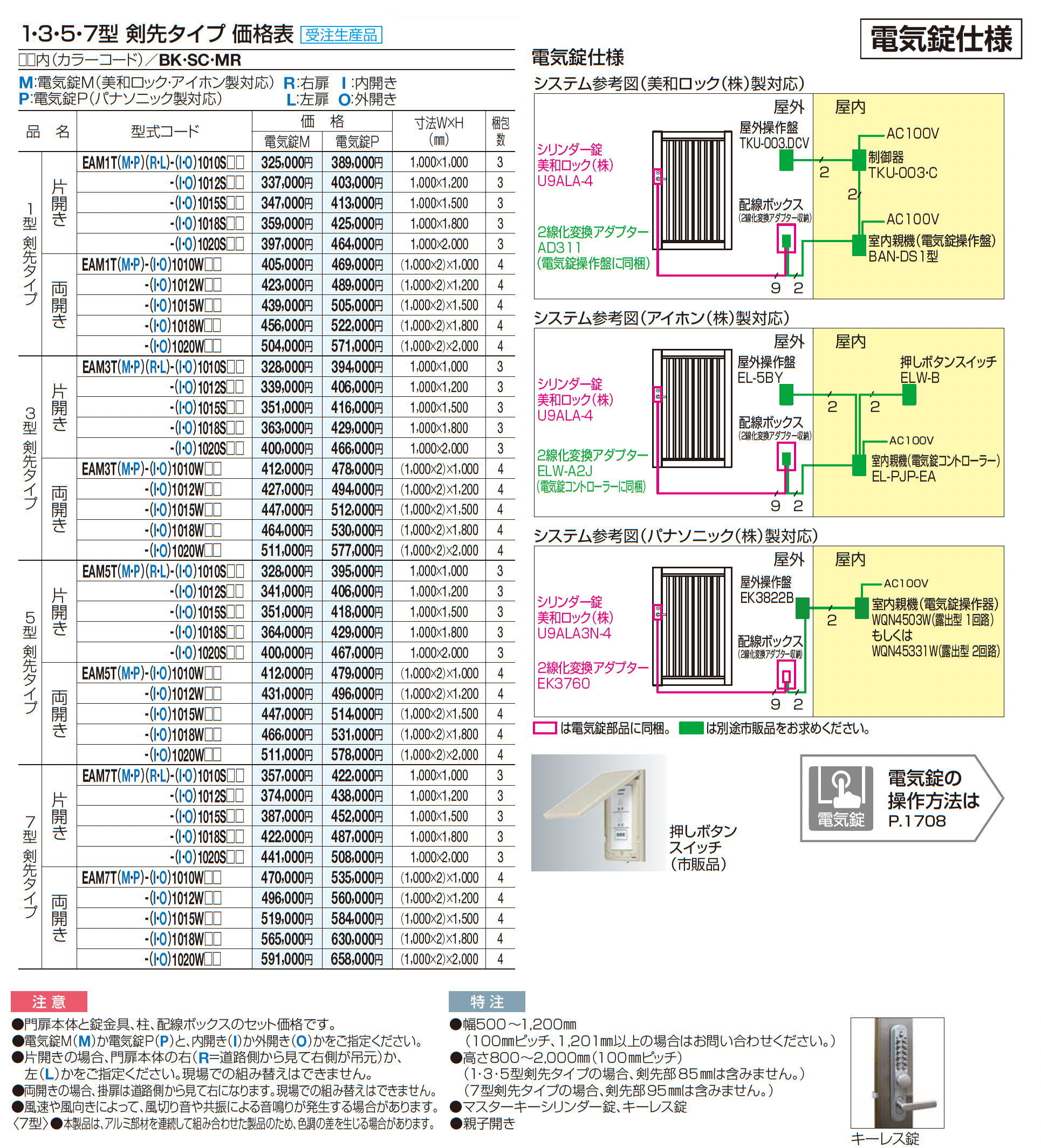 門扉 EAM1型(剣先タイプ/標準錠仕様)【2025年版】(エクステリア総合カタログ 2025年度版)