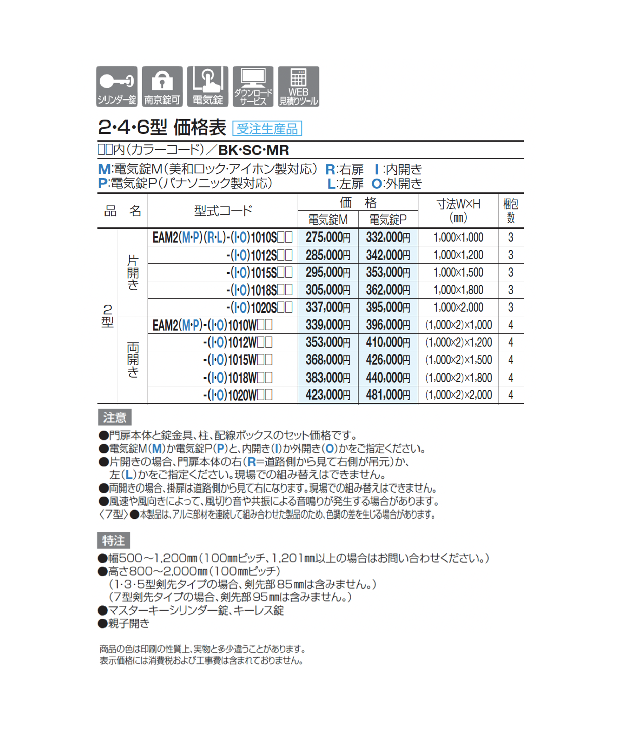 | 新旧品 | 門扉 EAM2型(電気錠仕様)【2024年版】(エクステリア総合カタログ 2024年度版)門扉 EAM2型(電気錠仕様)【2023年版】(エクステリア総合カタログ 2023年度版) |
