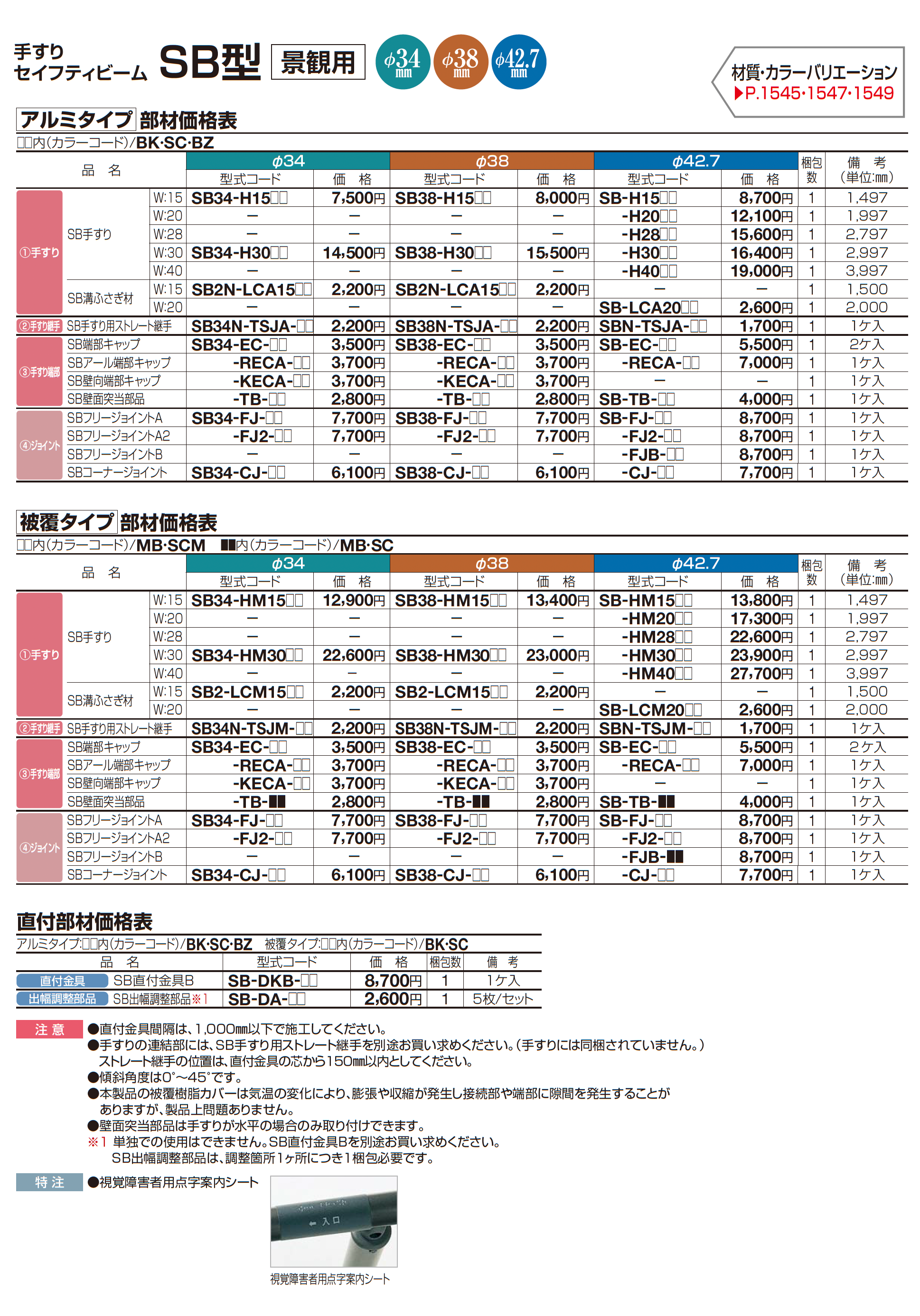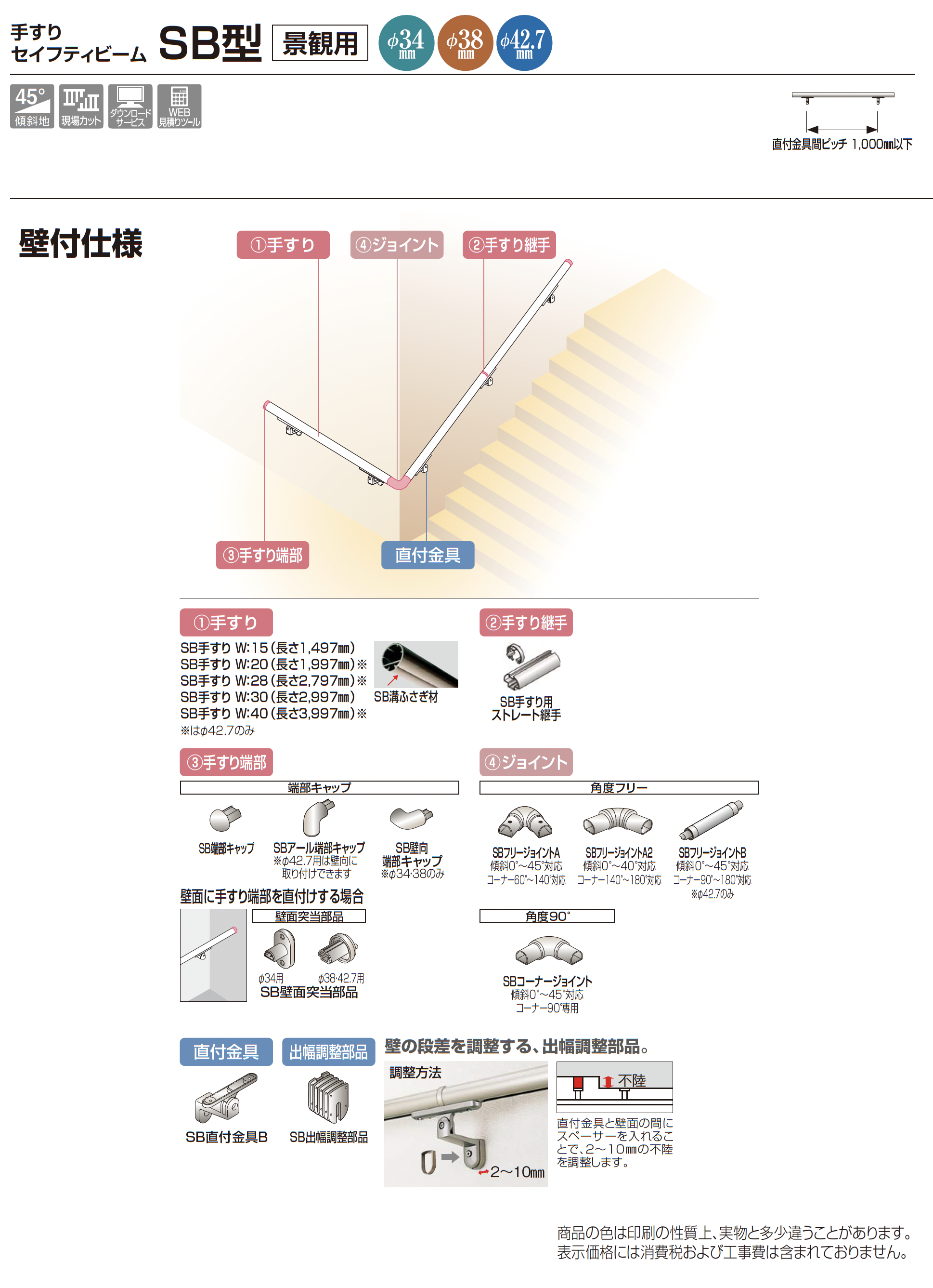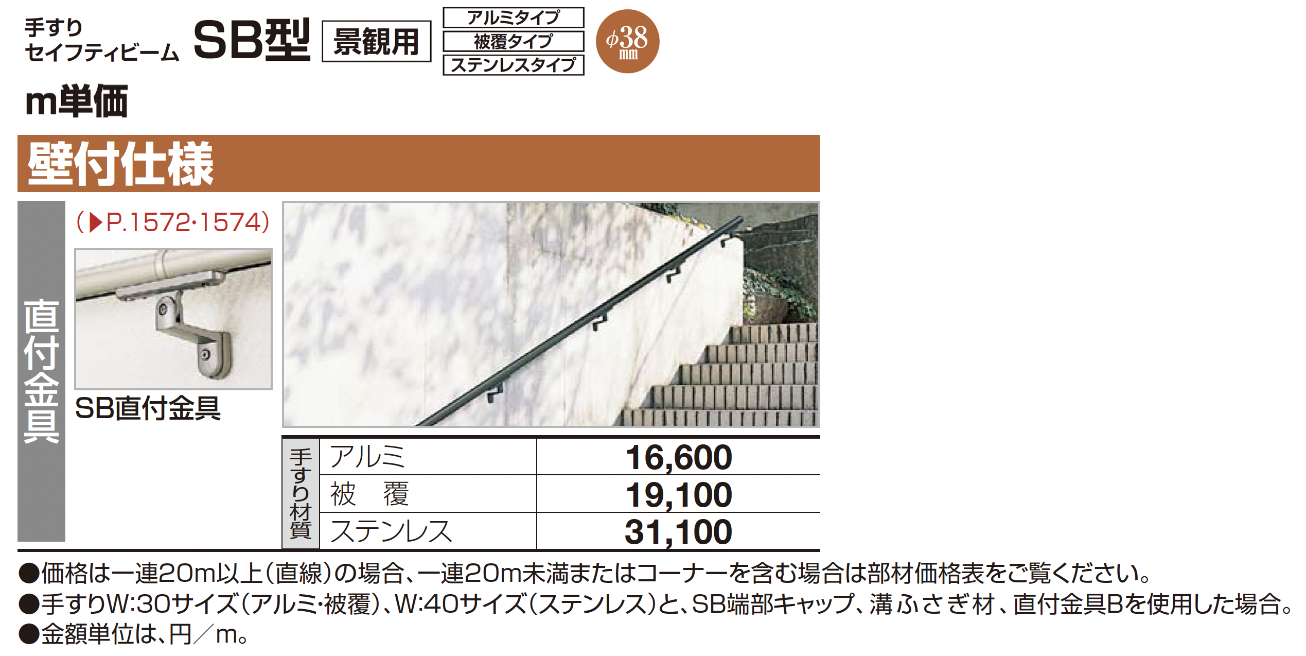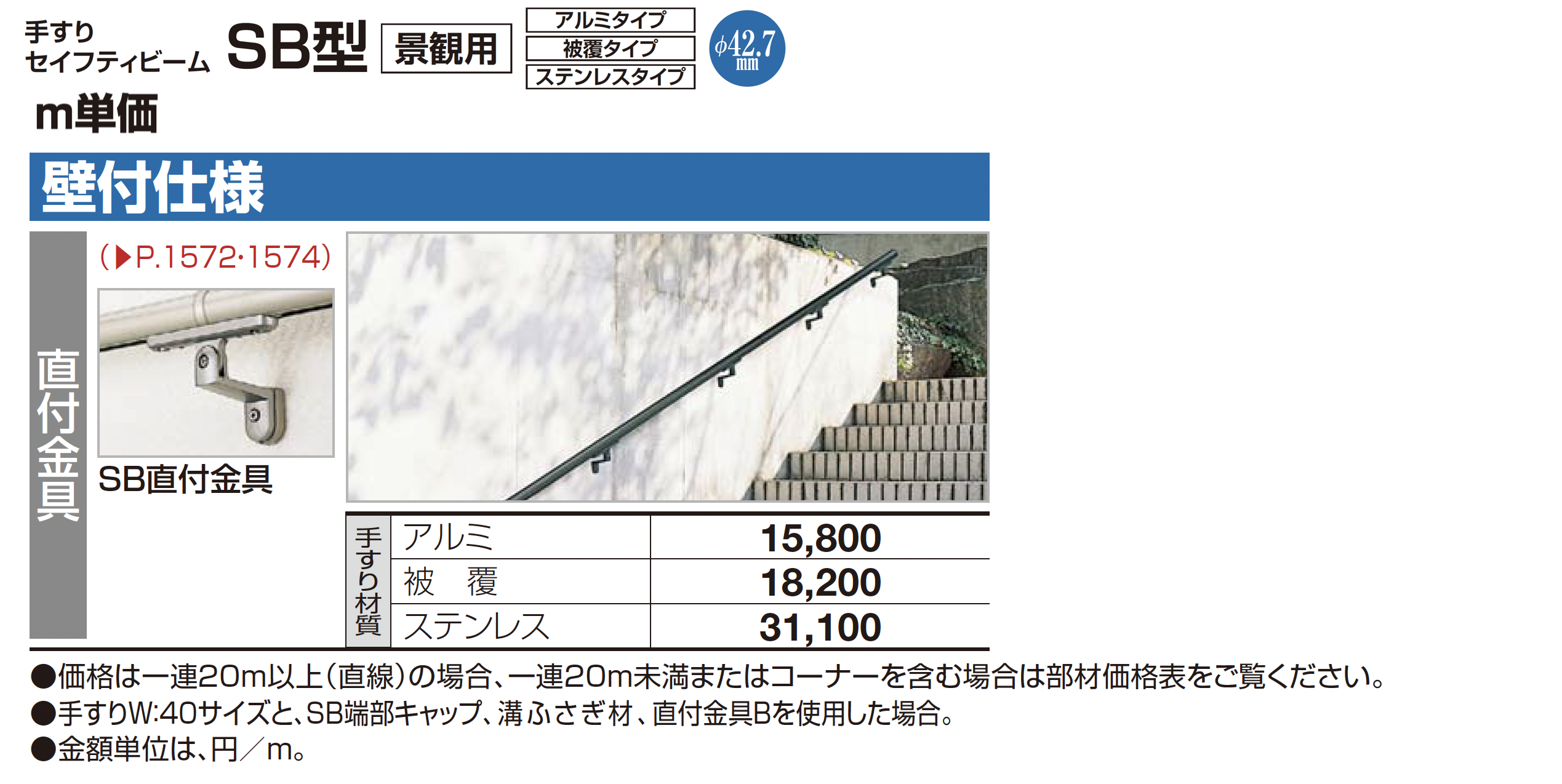 手すり セイフティビーム SB型 (アルミ・被覆タイプ)壁付仕様【2024年版】(エクステリア総合カタログ 2024年度版)