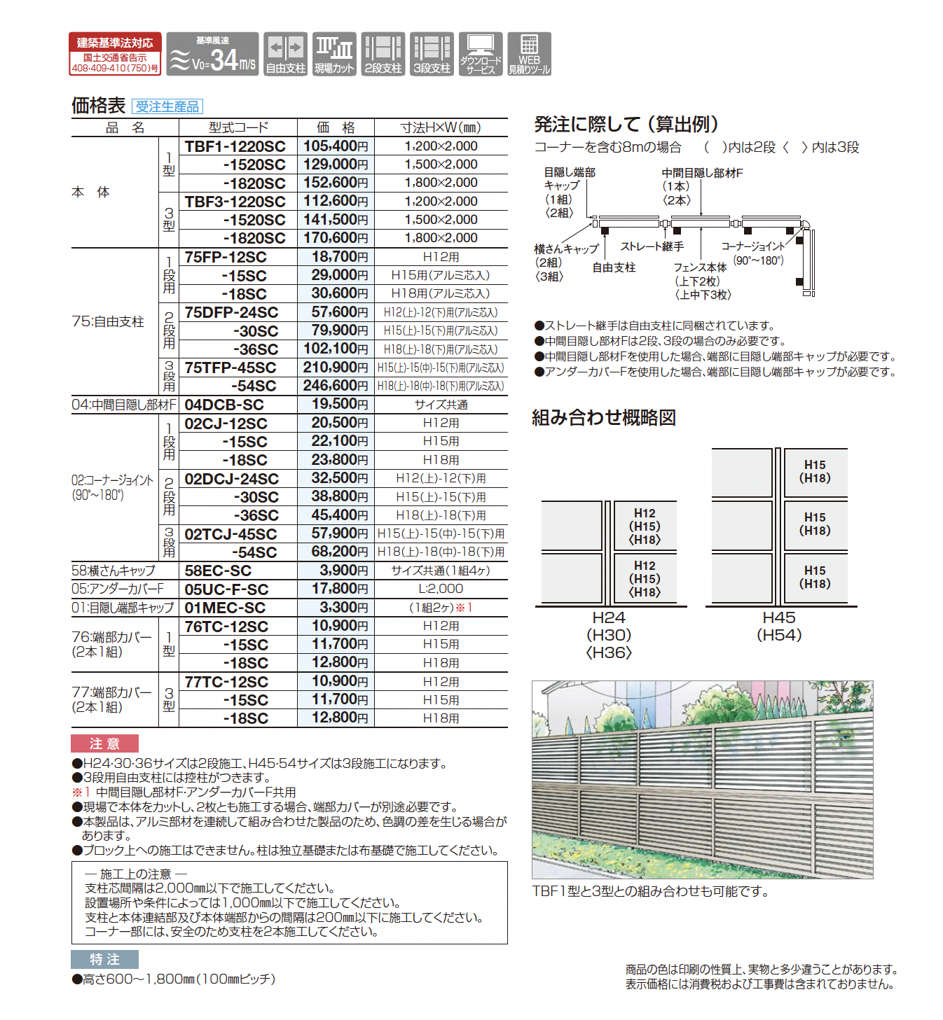防風フェンスTBF3型【2024年版】(エクステリア総合カタログ 2024年度版)