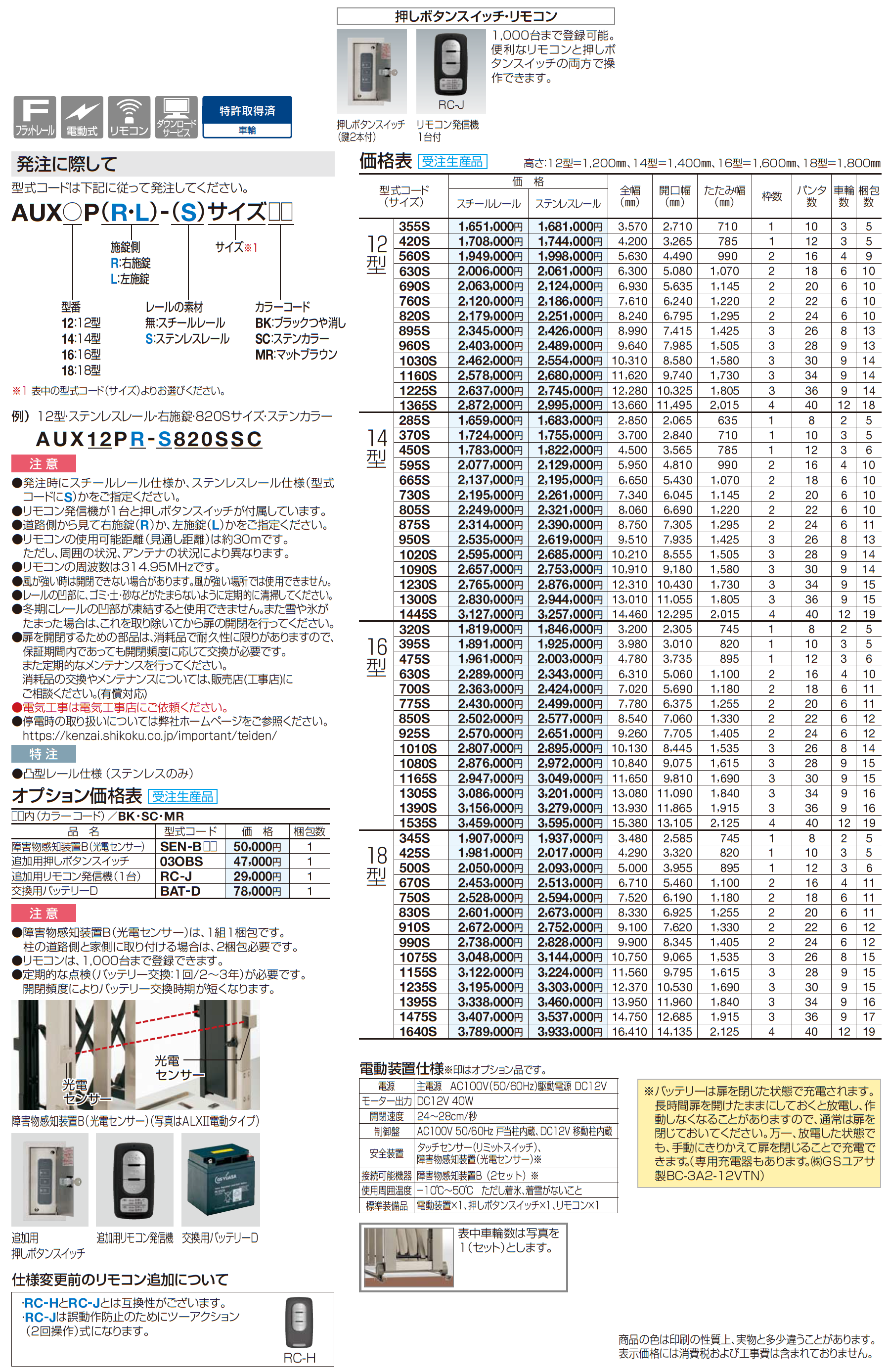 AUX 電動タイプ 12型/14型/16型/18型 フラットレールタイプ【2024年版】(エクステリア総合カタログ 2024年度版)
