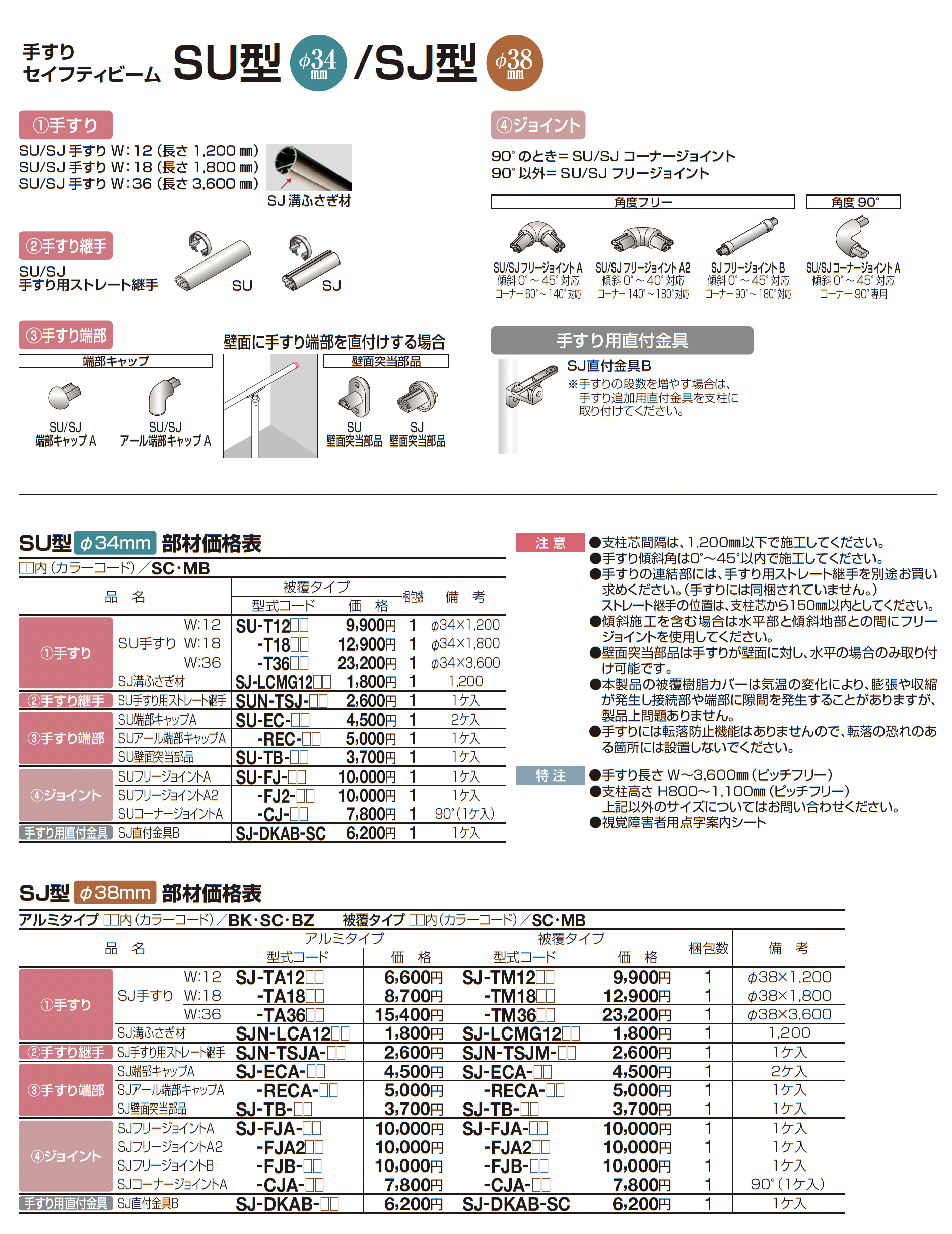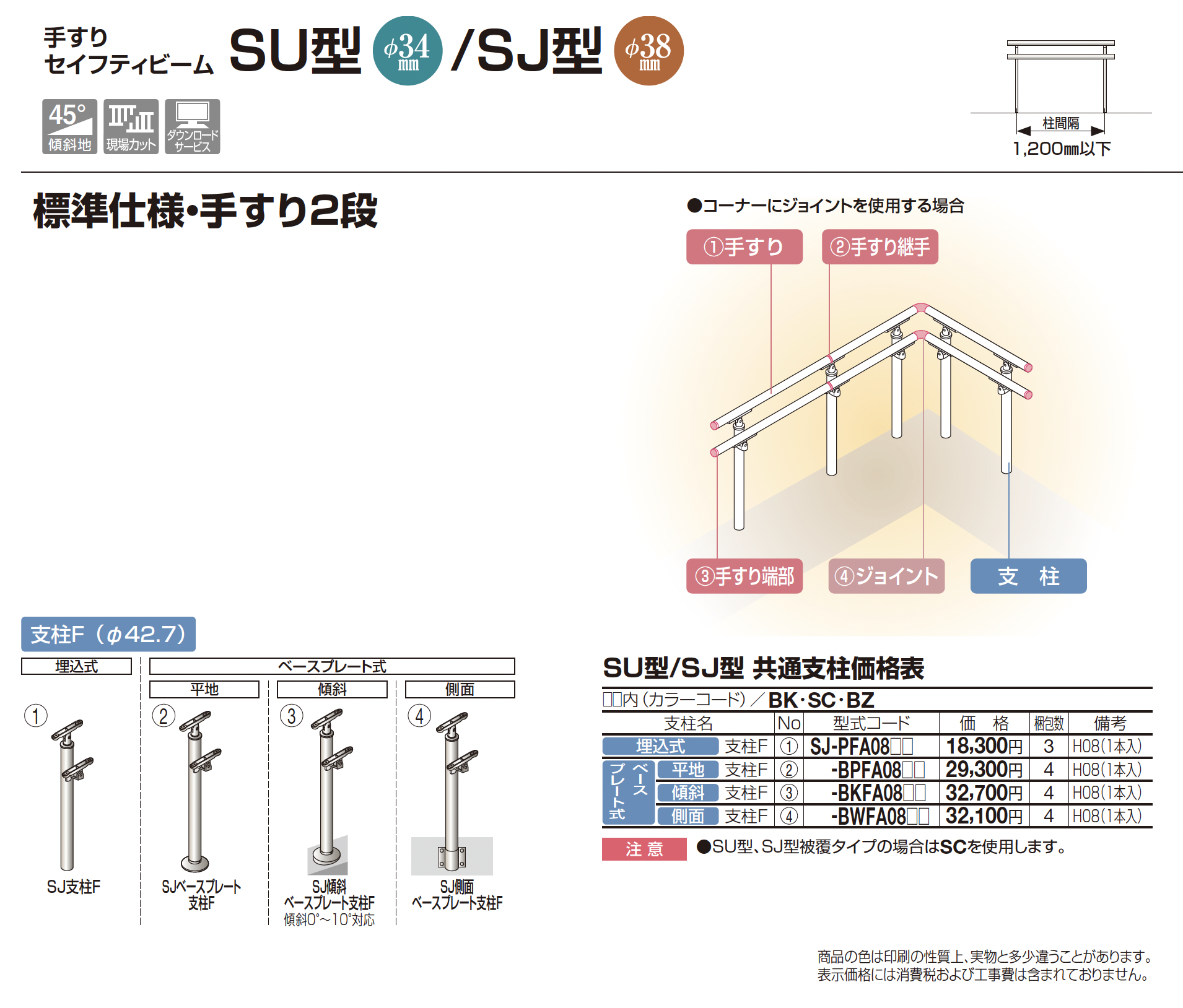 手すり セイフティビーム SU型Φ34mm / SJ型 Φ38mm 標準仕様・手すり2段【2023年版】(エクステリア総合カタログ 2023年度版)