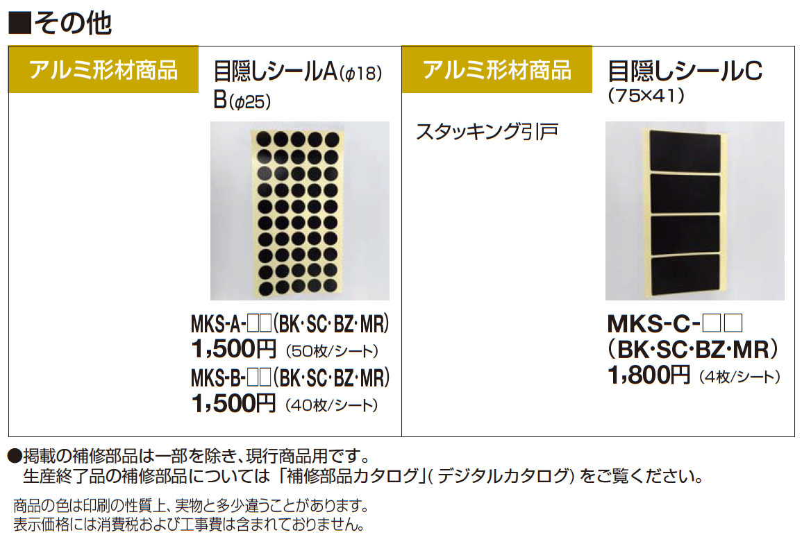 その他補修部品 アルミ形材商品【2024年版】(エクステリア総合カタログ 2024年度版)