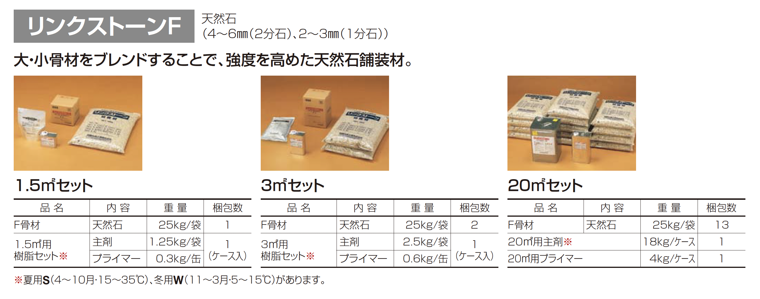 | 材質 | 天然石4~6mm(2分石) 天然石2~3mm(1分石) 無黄変ウレタン樹脂 |
