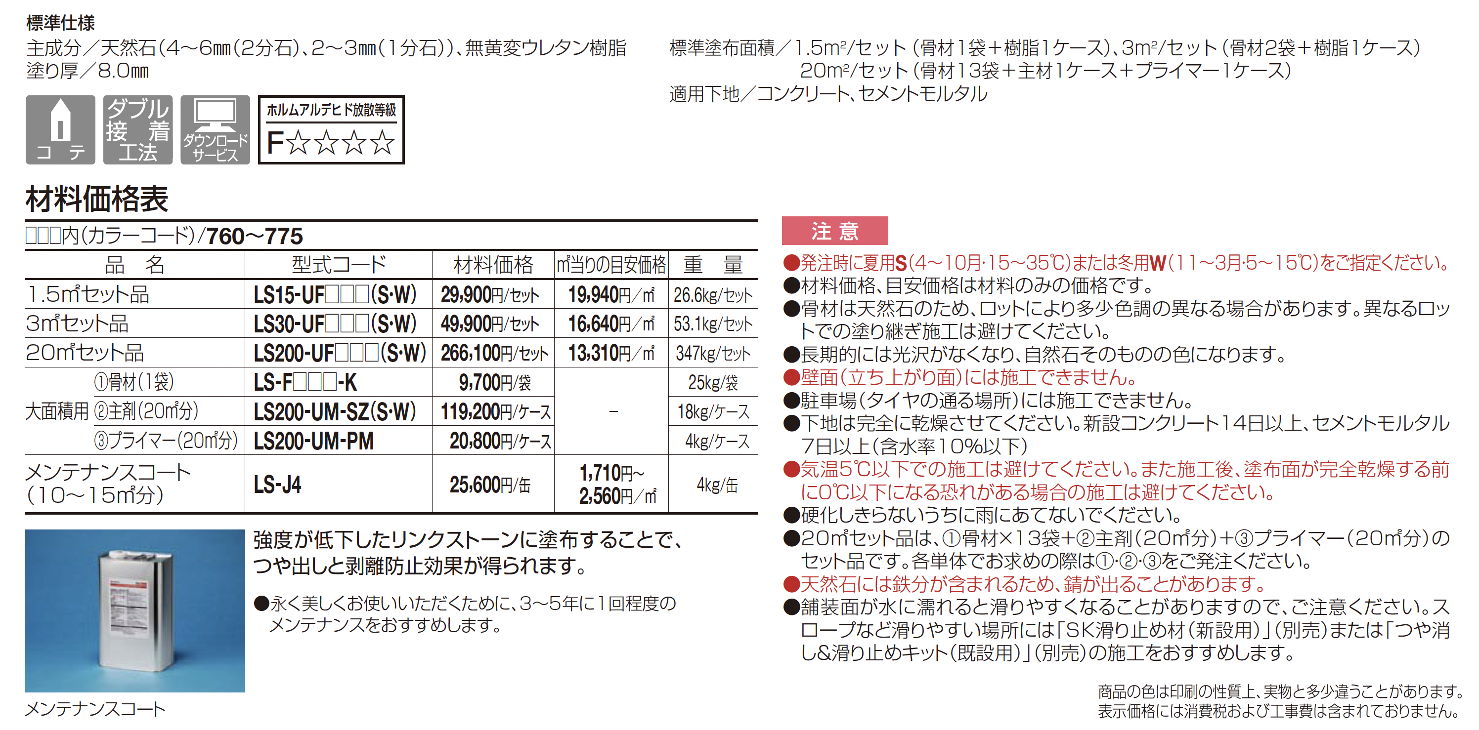 | カラー | No:760(ニュー白石) No:761(ニュー白銀) No:762(ダークグレイ) No:763(黒石) No:764(ニューみかげ) No:765(セロジネ) No:766(ニュー萌黄) No:767(ニュー若竹) No:768(ニュー象牙) No:769(カモミール) No:770(ニュー黄みかげ) No:771(ニュー フリージア) No:772(石英) No:773(ニュー東雲) No:774(赤みかげ) No:775(川石) |