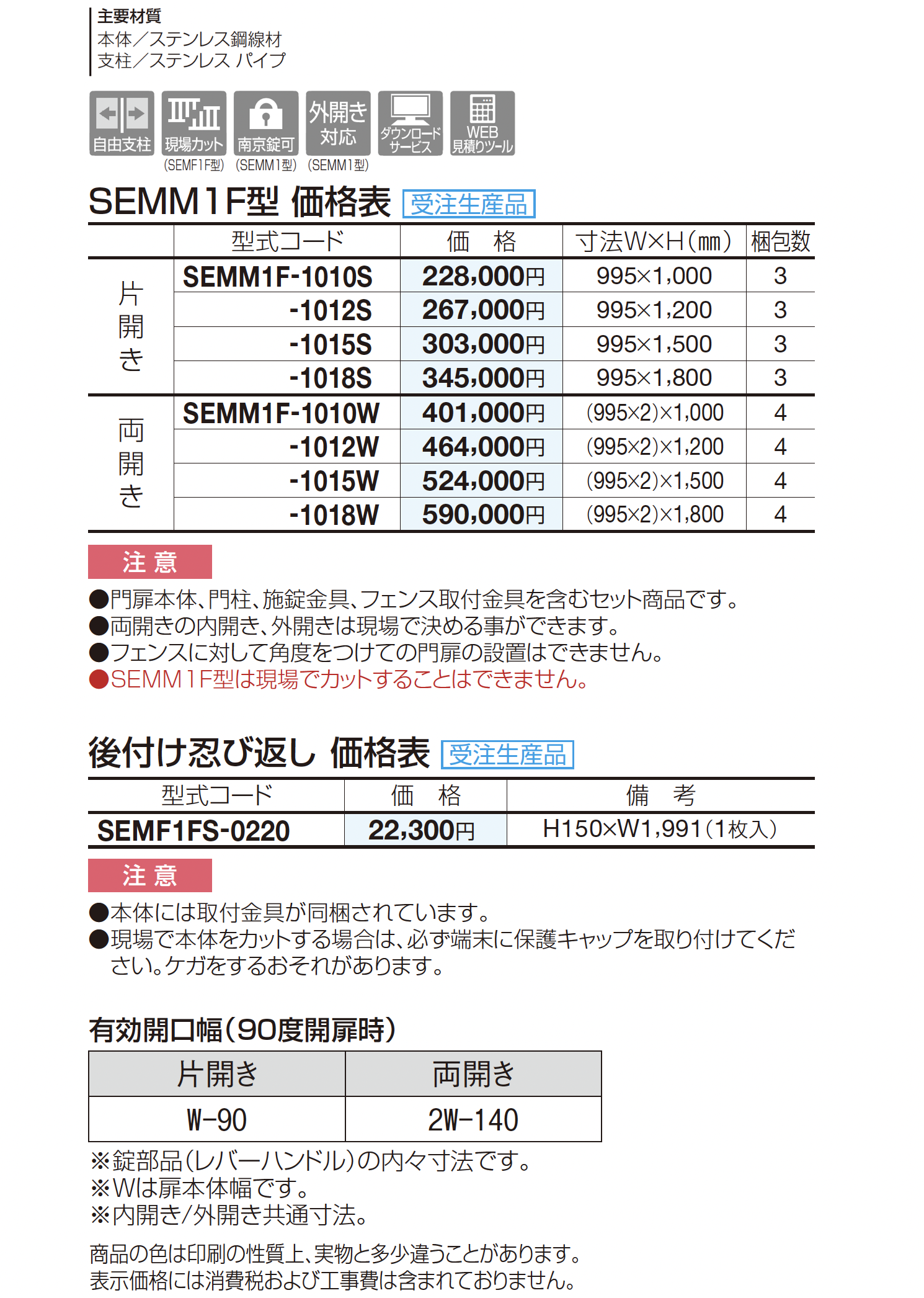 門扉 SEMM1F型【2023年版】(エクステリア総合カタログ 2023年度版)