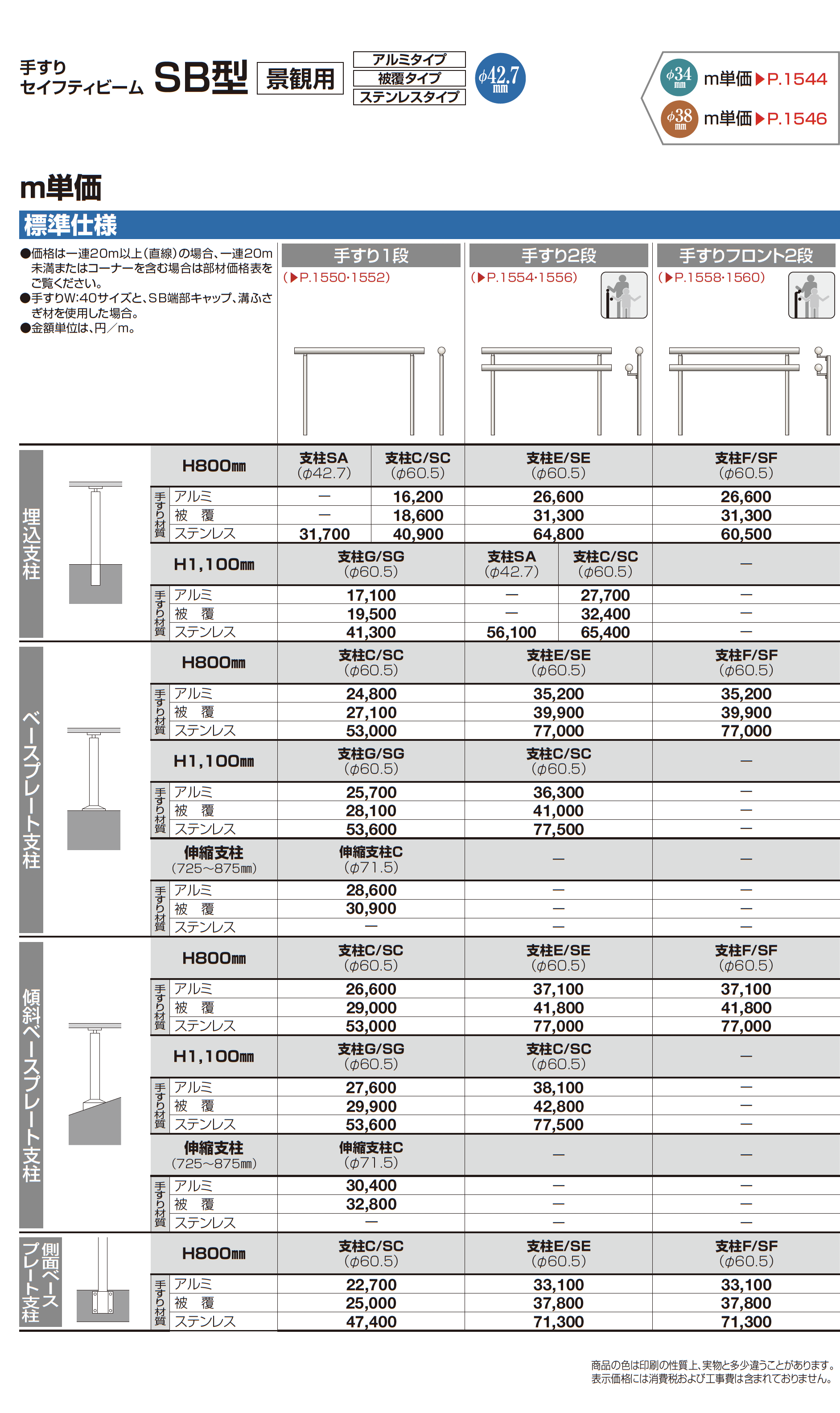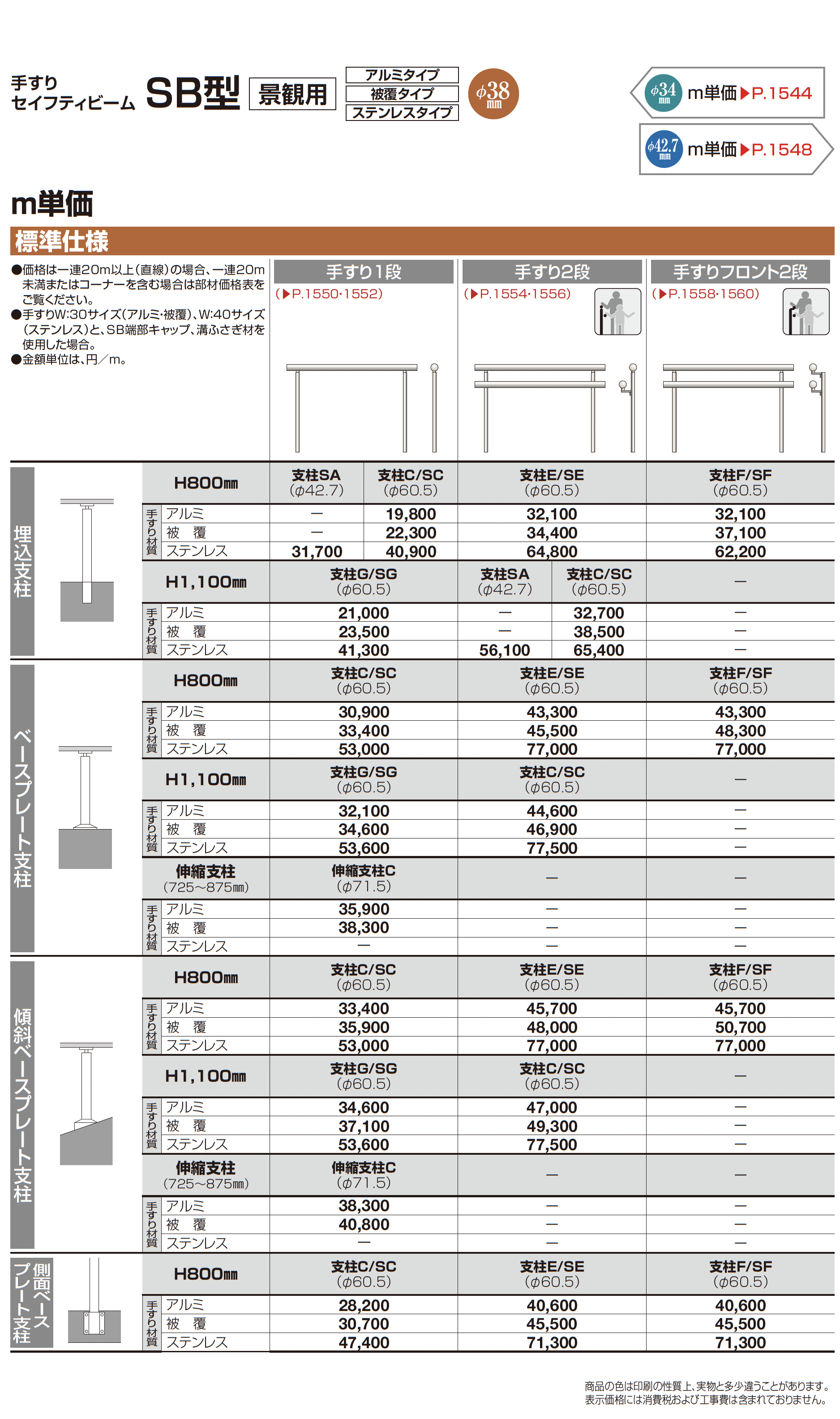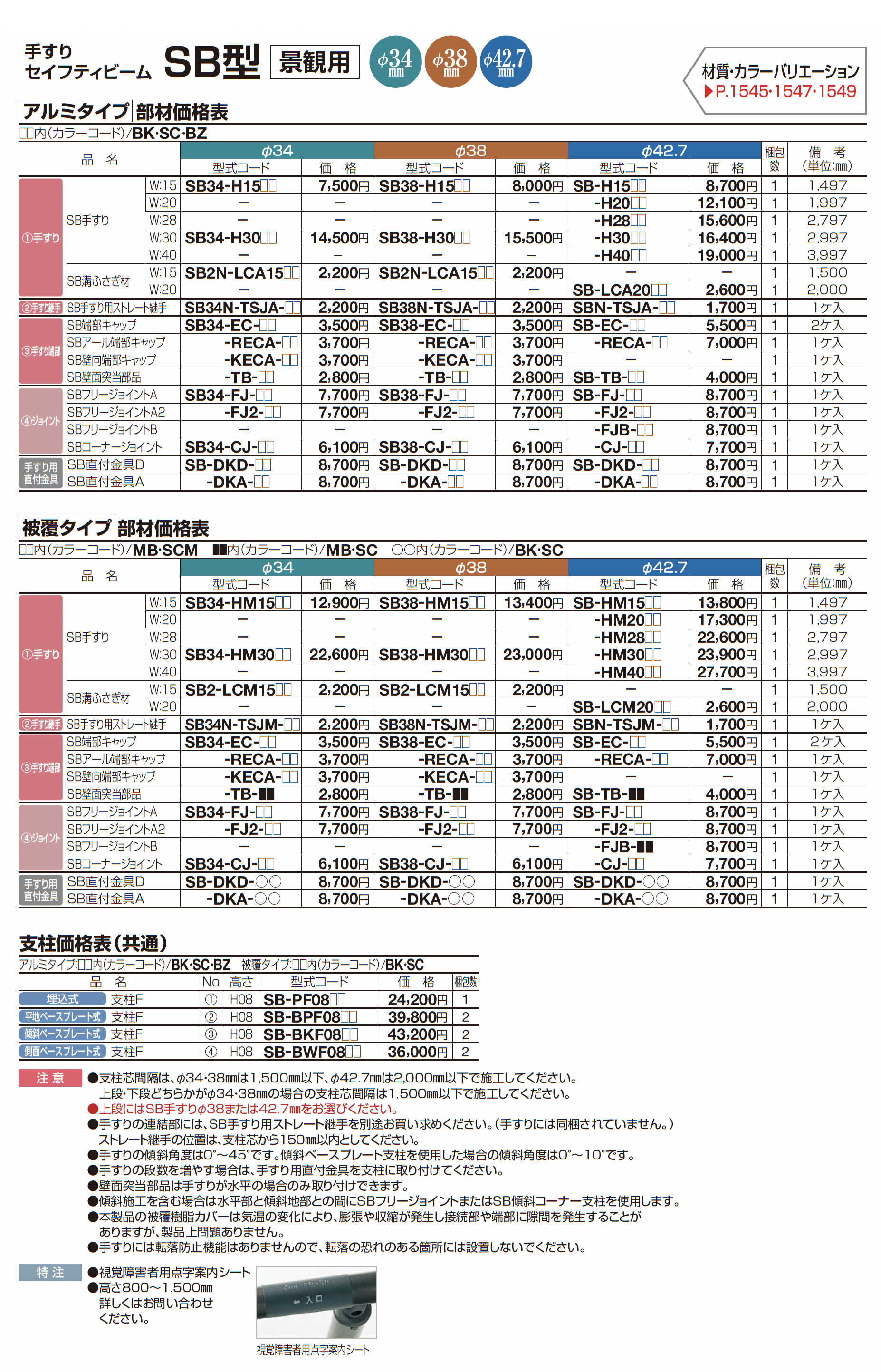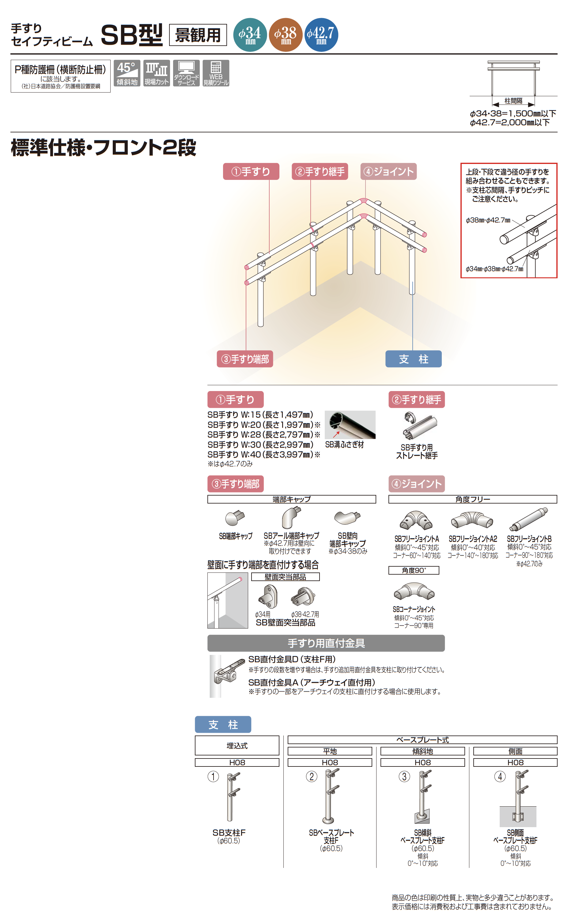 手すり セイフティビーム SB型 (アルミ・被覆タイプ)標準仕様・フロント2段【2025年版】(エクステリア総合カタログ 2025年度版)