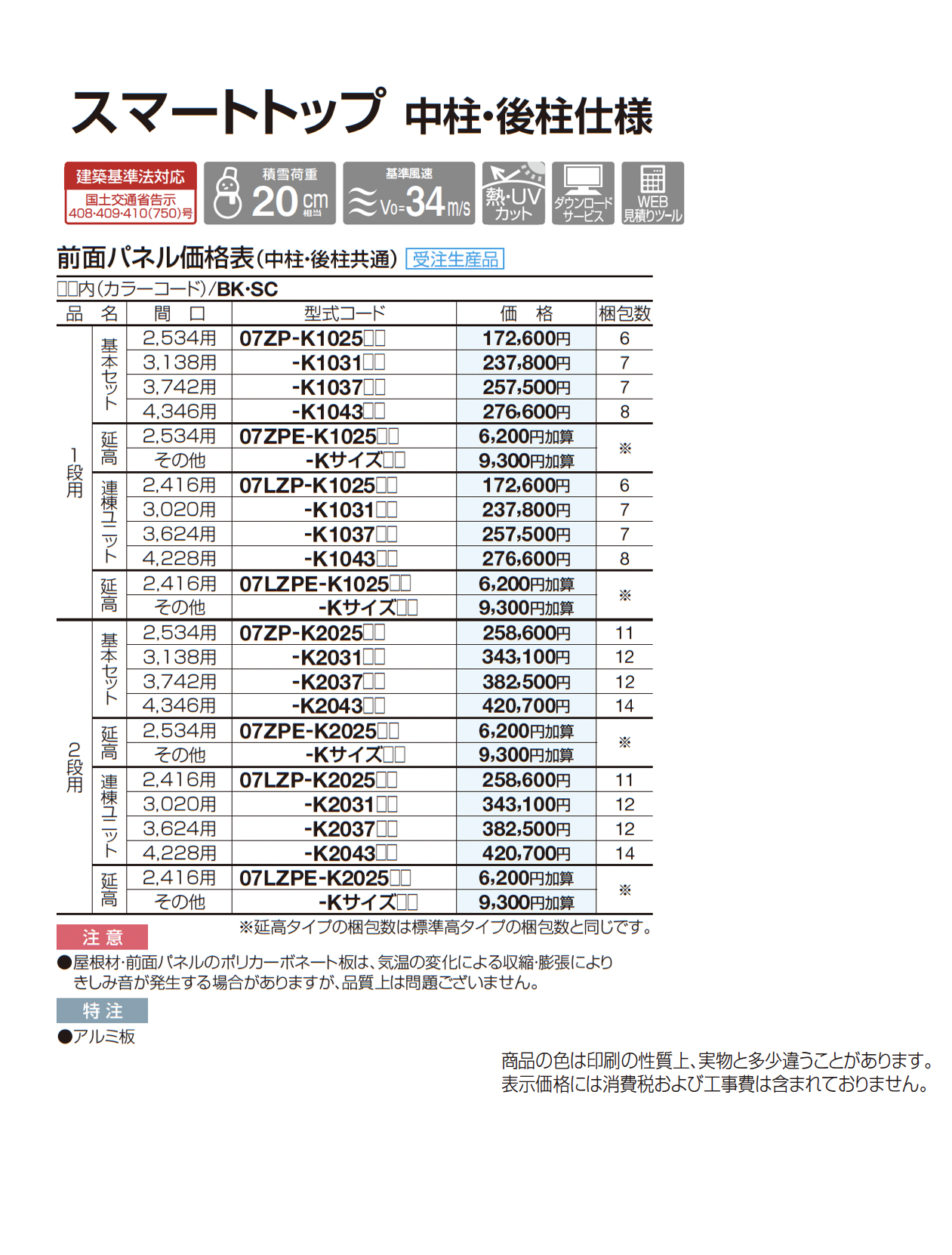 | カラー | BK:ブラックつや消し SC:ステンカラー KSB:BK+セピアブラウン KMB:BK+マロンブラウン KLB:BK+ライトブラウン SB:SC+セピアブラウン MB:SC+マロンブラウン LB:SC+ライトブラウン K:熱線吸収ポリカ板(クリア片面マット) |