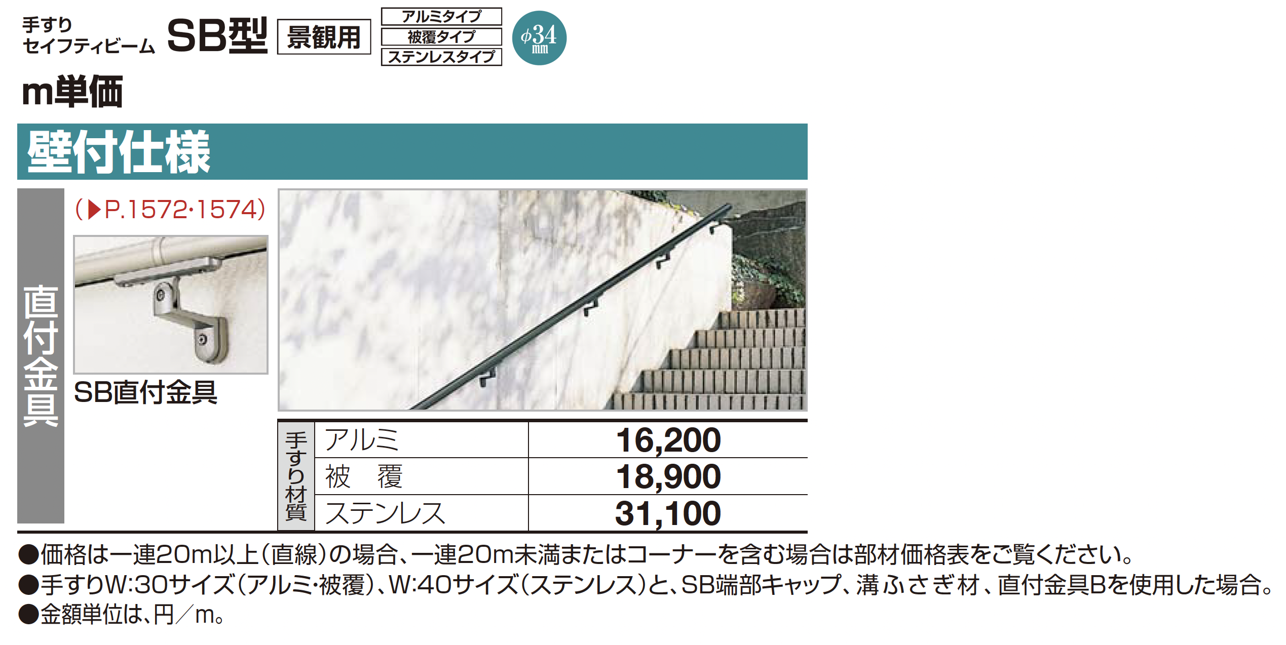 手すり セイフティビーム SB型 (ステンレスタイプ)壁付仕様【2025年版】(エクステリア総合カタログ 2025年度版)