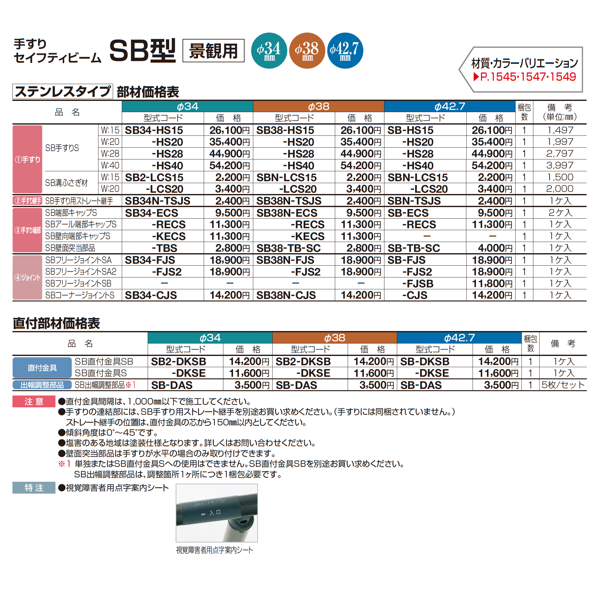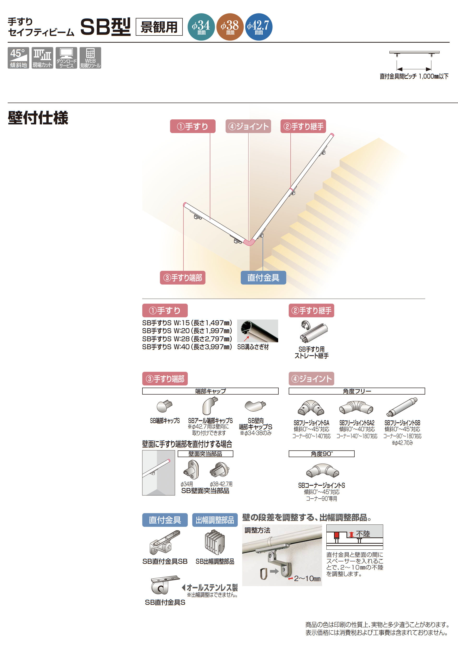 手すり セイフティビーム SB型 (ステンレスタイプ)壁付仕様【2023年版】(エクステリア総合カタログ 2023年度版)