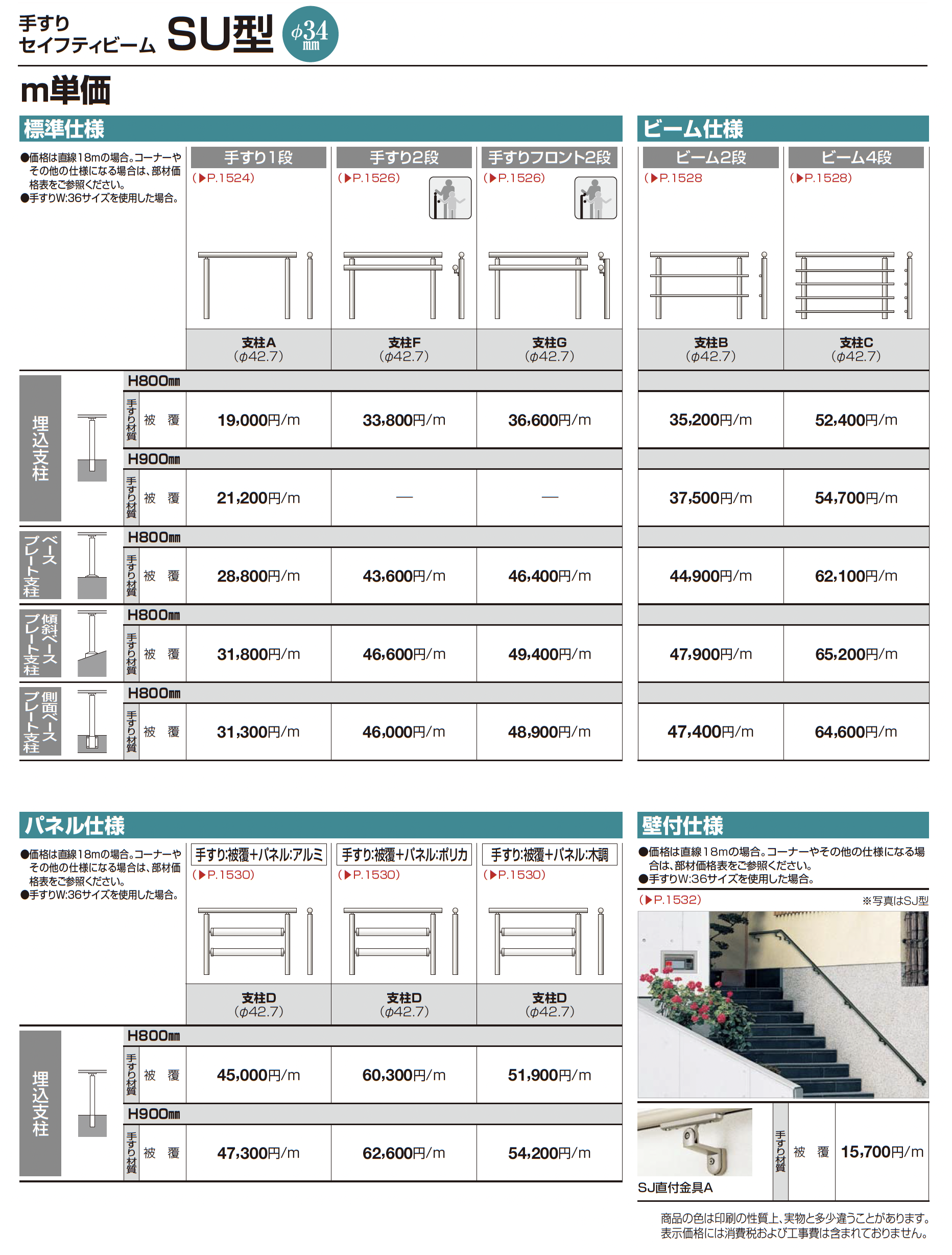 手すり セイフティビーム SU型Φ34mm / SJ型Φ38mm標準仕様・フロント2段【2023年版】(エクステリア総合カタログ 2023年度版)