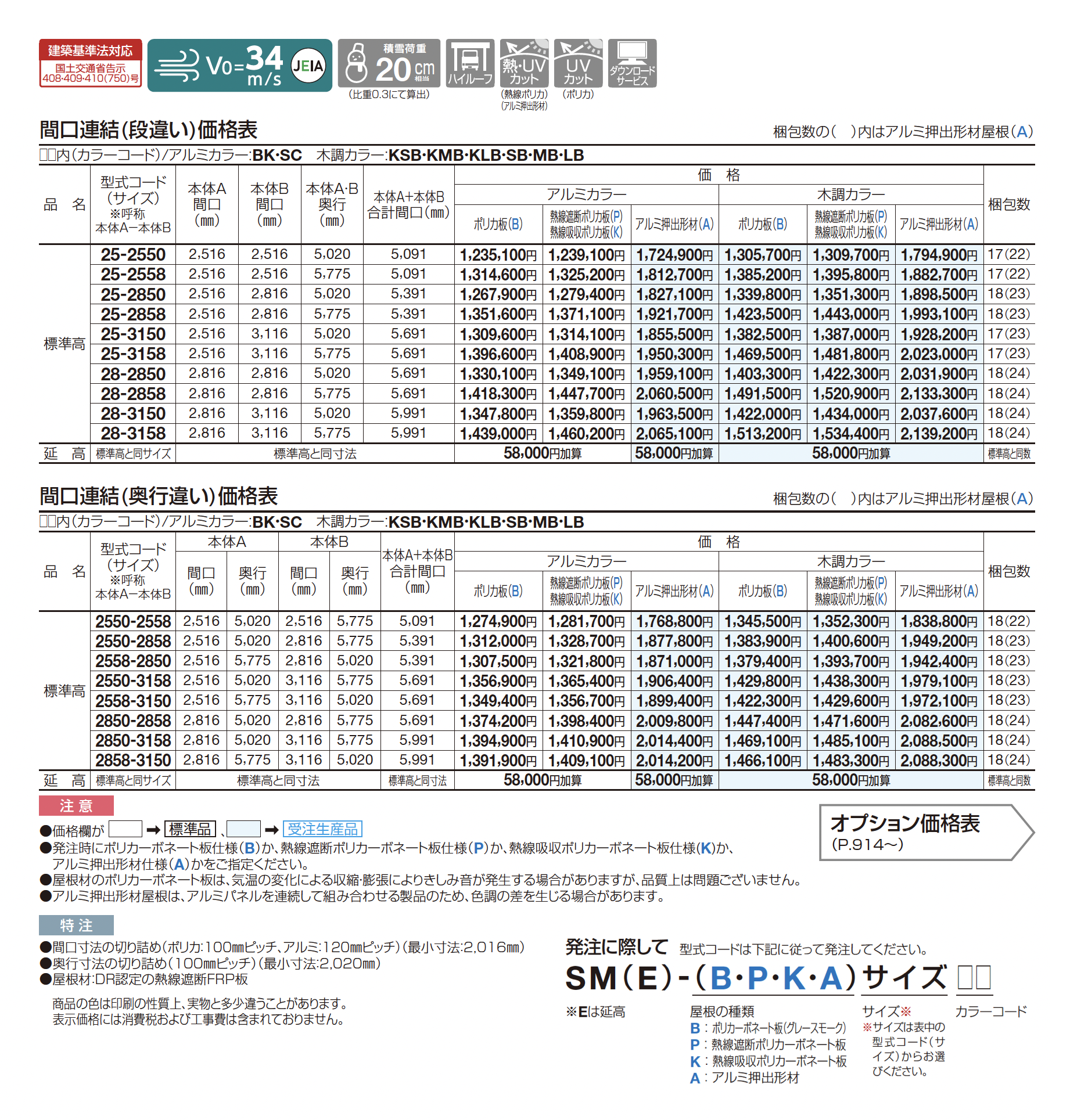 | カラー | BK:ブラックつや消し KSB:BK+セピアブラウン KMB:BK+マロンブラウン KLB:BK+ライトブラウン SC:ステンカラー SB:SC+セピアブラウン MB:SC+マロンブラウン LB:SC+ライトブラウン B:ポリカ板(グレースモーク) P:熱線遮断ポリカ板(グレースモーク) K:熱線吸収ポリカ板(クリア片面マット) A:アルミ押出形材(不燃材)(ステンカラー) |