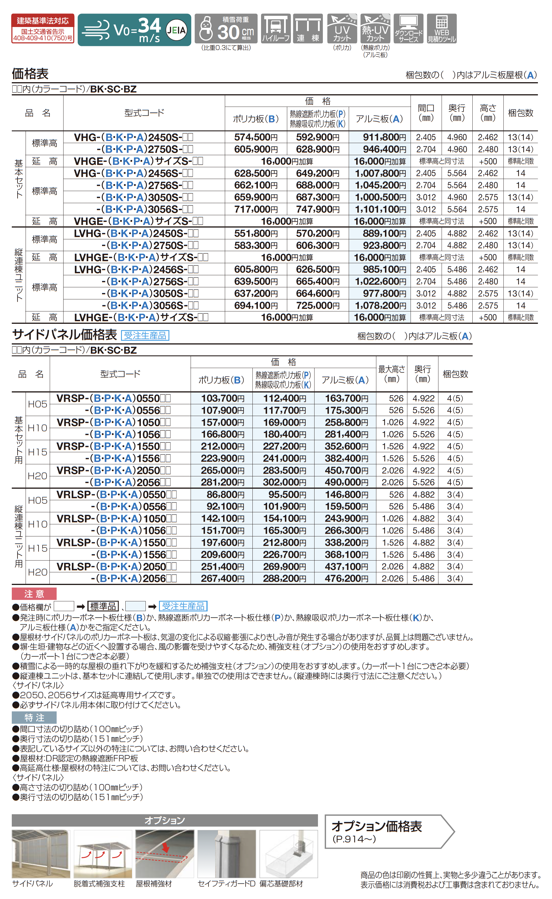 | カラー | BK:ブラックつや消し SC:ステンカラー BZ:ブロンズ B:ポリカ板(グレースモーク) P:熱線遮断ポリカ板(グレースモーク) K:熱線吸収ポリカ板(クリア片面マット) A:アルミ板(不燃材)(ステンカラー) |