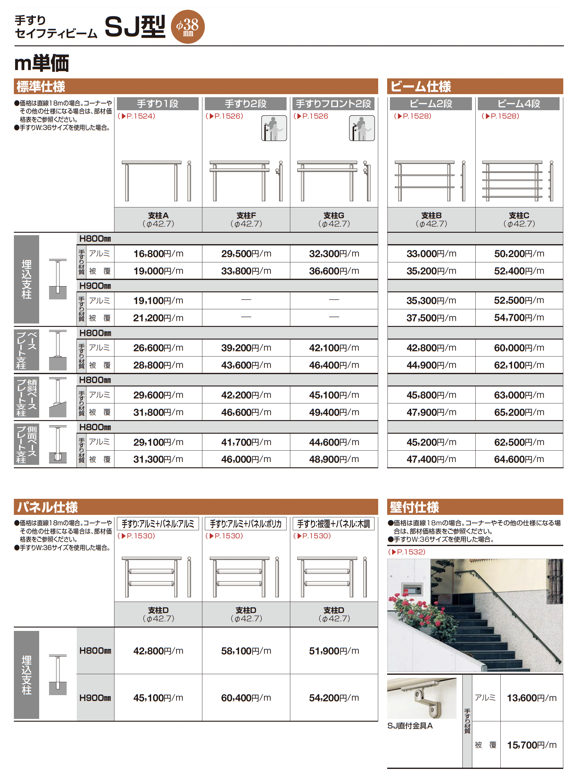 手すり セイフティビーム SU型Φ34mm / SJ型Φ38mm ビーム仕様・ビーム2段【2025年版】(エクステリア総合カタログ 2025年度版)