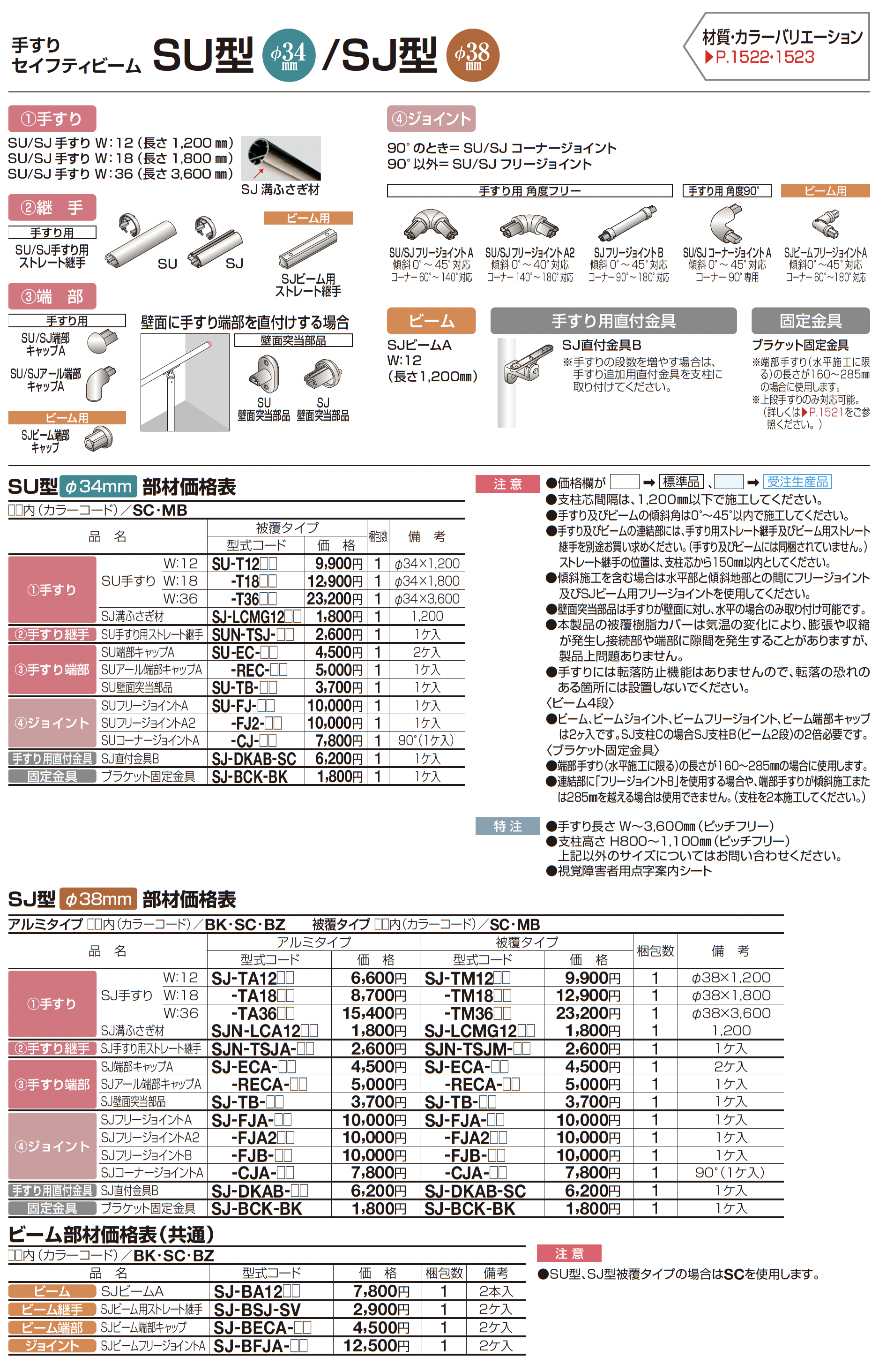 手すり セイフティビーム SU型Φ34mm / SJ型Φ38mm ビーム仕様・ビーム2段【2023年版】(エクステリア総合カタログ 2023年度版)