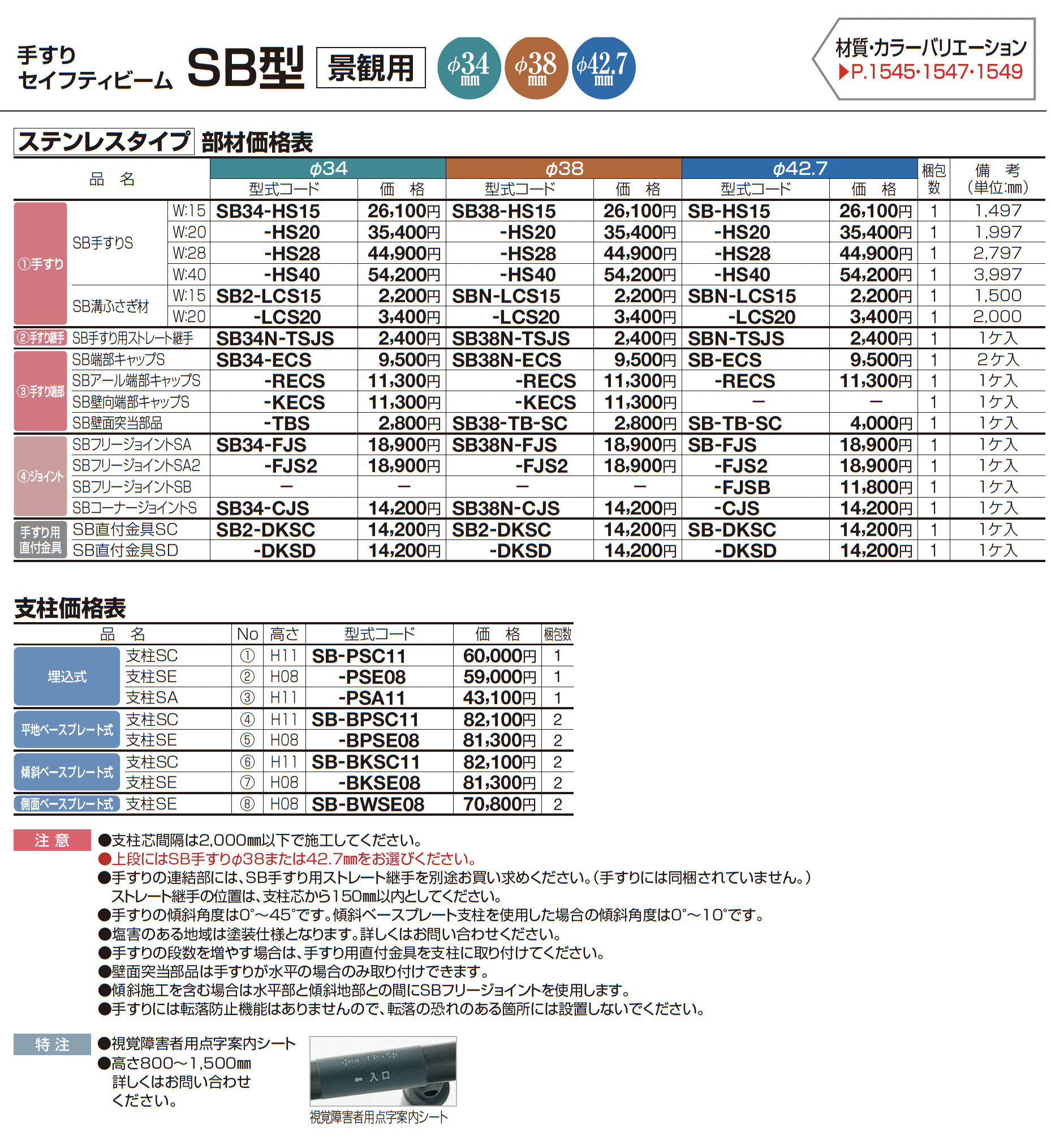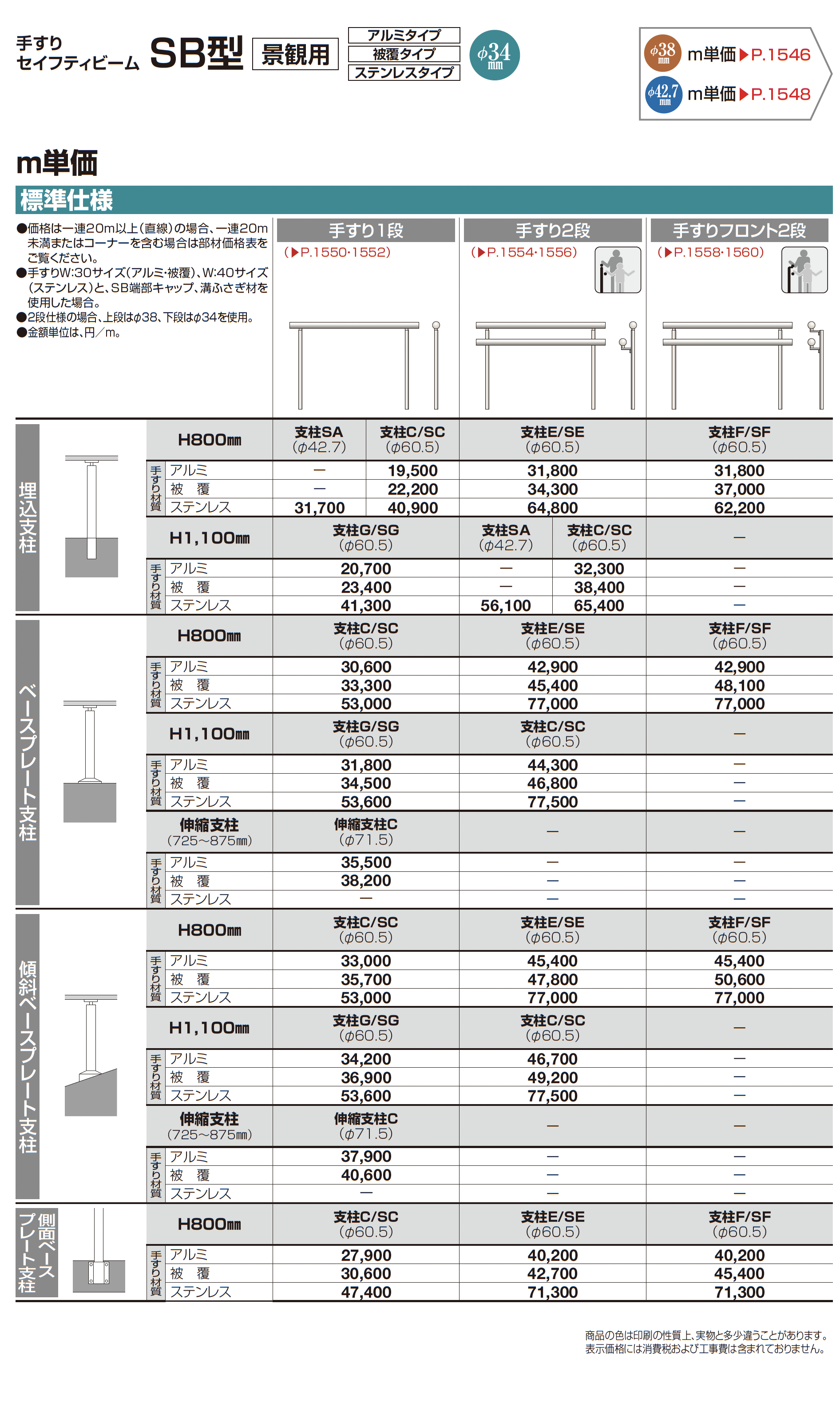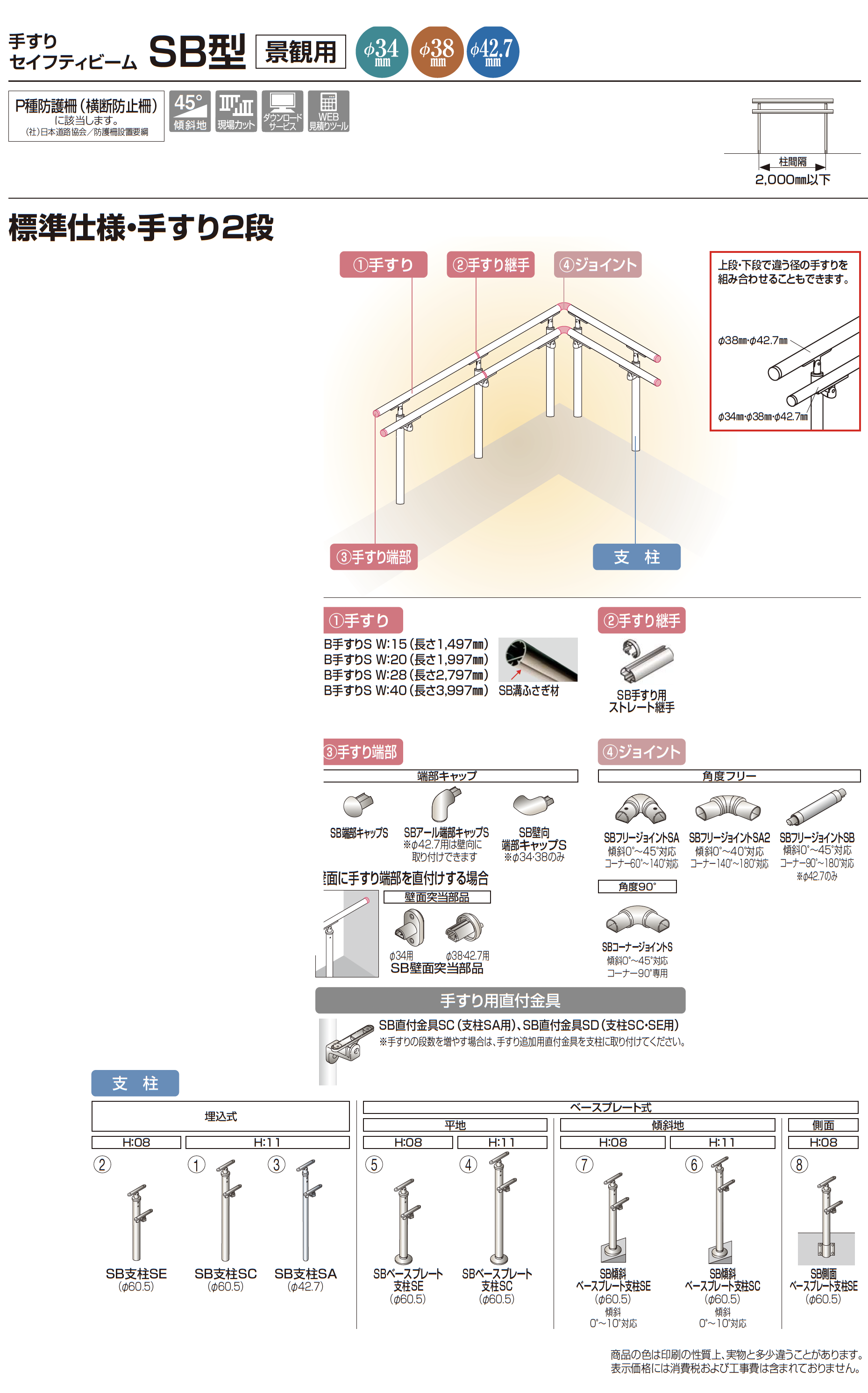 手すり セイフティビーム SB型(ステンレスタイプ)標準仕様・手すり2段【2023年版】(エクステリア総合カタログ 2023年度版)