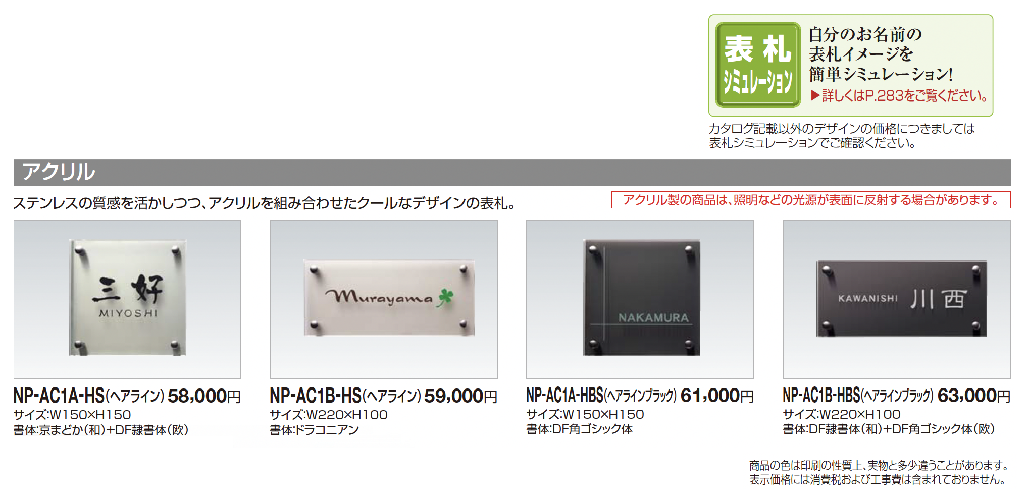 | 新旧品 | 表札(アクリル)【2025年版】(エクステリア総合カタログ 2025年度版)表札(アクリル)【2024年版】(エクステリア総合カタログ 2024年度版)表札(アクリル)【2023年版】(エクステリア総合カタログ 2023年度版) |