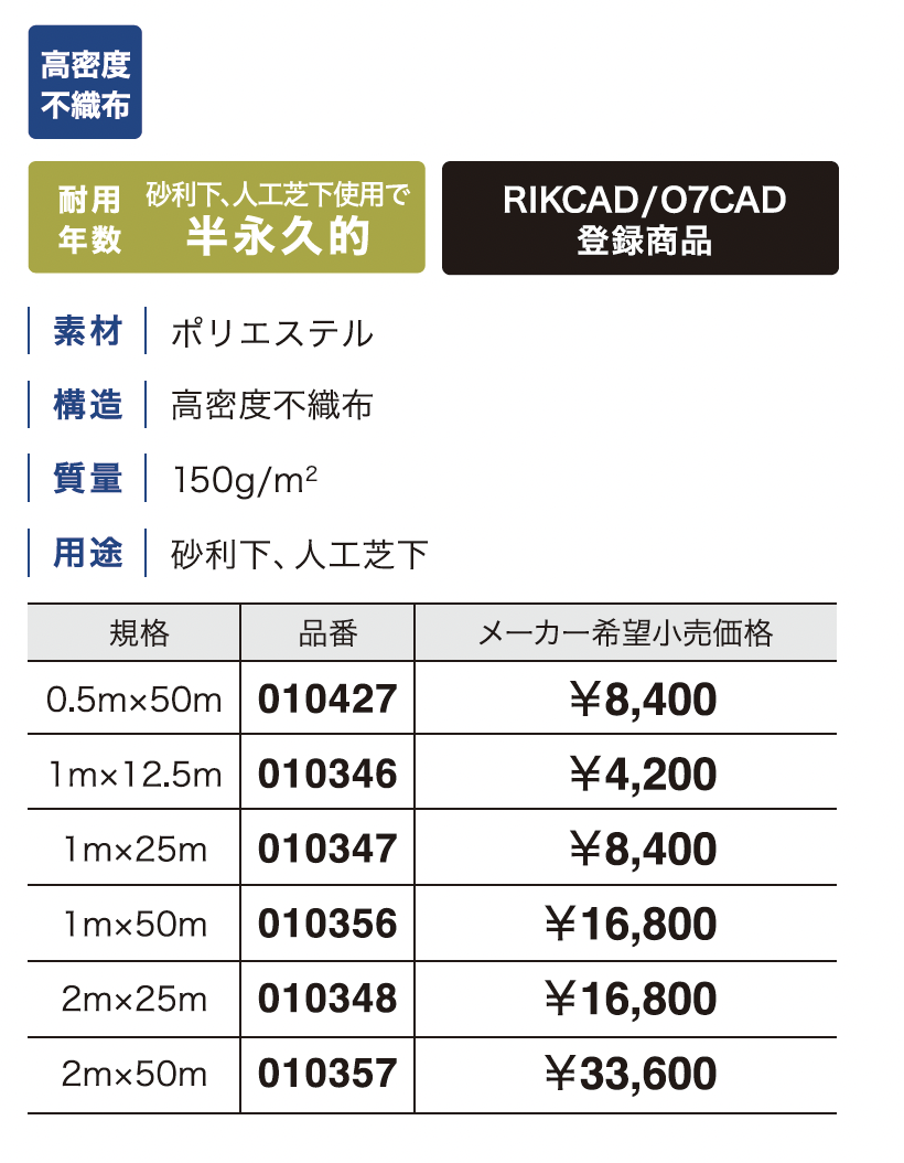 | オプション | 施工方法 砂利下や人工芝下で使用する場合 |