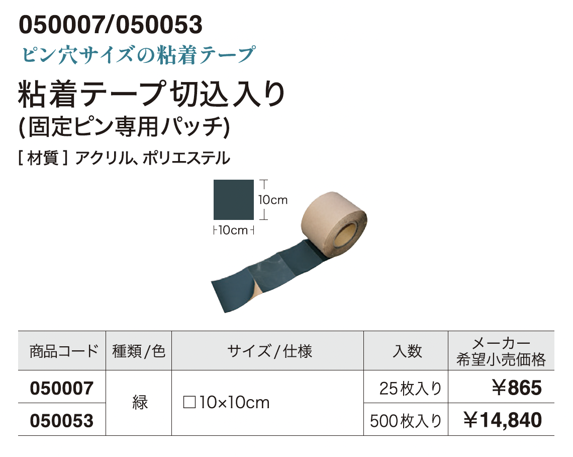 粘着テープ切込入り(固定ピン専用パッチ)