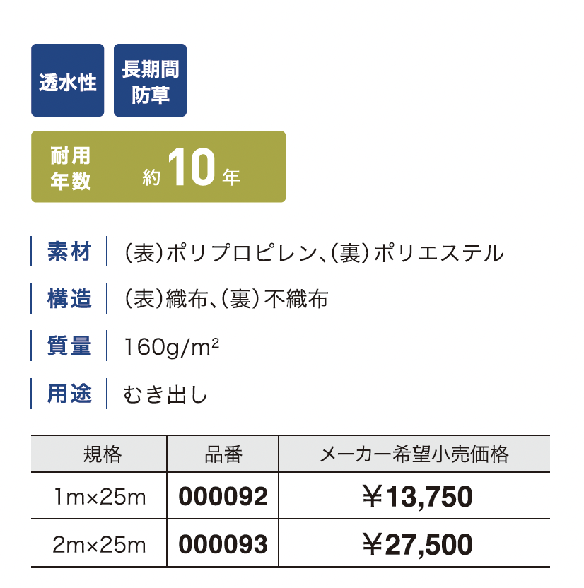 ※ナックスシリーズは製品仕様書がございません。官公庁工事で防草シートを使用する際はお問い合わせください。 ※当カタログのメーカー希望小売価格に、消費税は含まれておりません。
