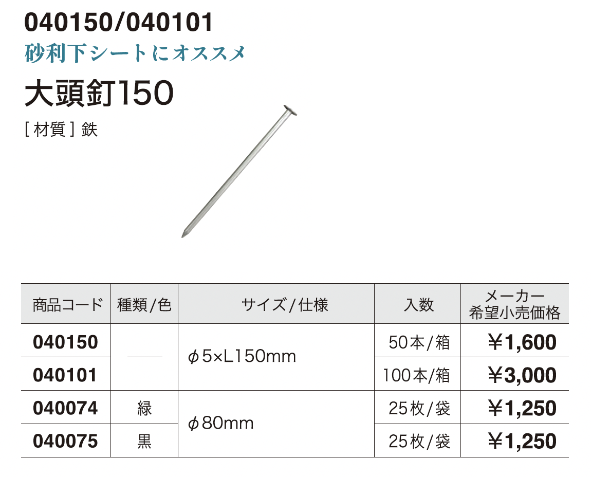 | 新旧品 | 大頭釘150【2025年版】(ナックス®︎防草シート 総合カタログ 2025)大頭釘150【2024年版】(ナックス®︎防草シート 総合カタログ 2024)大頭釘150【2023年版】(ナックス®︎防草シート 総合カタログ 2023-2024) |