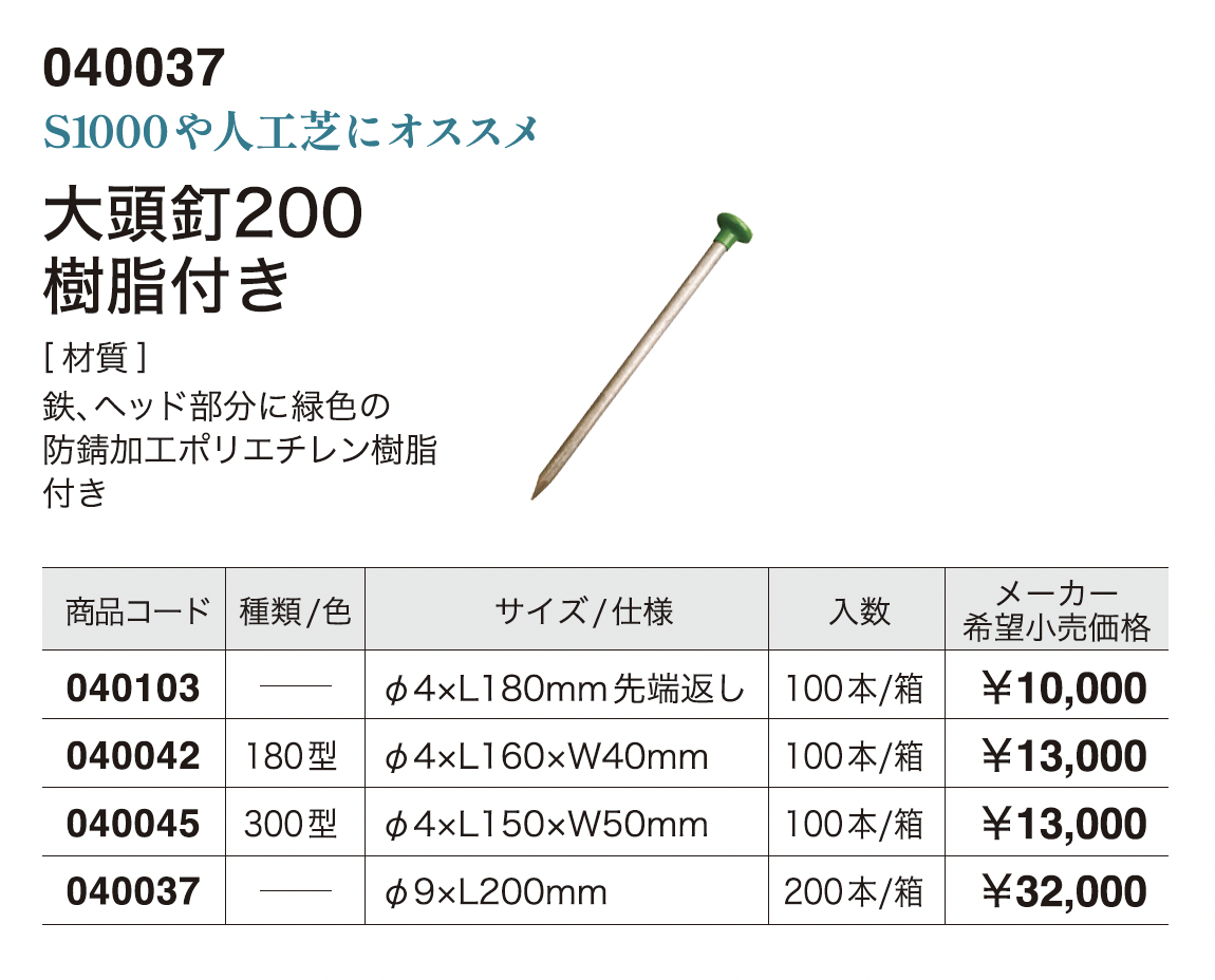 大頭釘200 樹脂付き【2023年版】(ナックス®︎防草シート 総合カタログ 2023-2024)