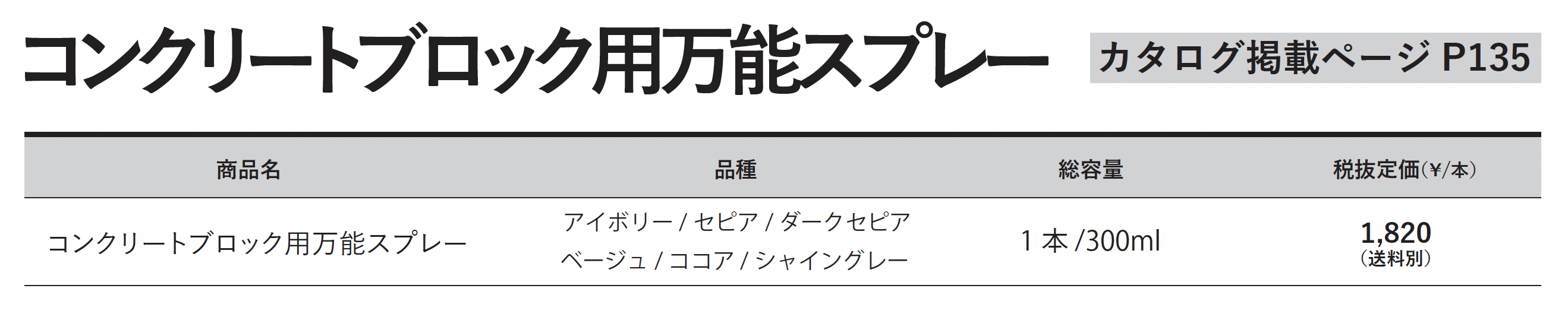 | 新旧品 | コンクリートブロック⽤万能スプレー【2025年版】(EXTERIOR CATALOG 2025-2026)コンクリートブロック⽤万能スプレー【2024年版】(EXTERIOR CATALOG 2024-2025)コンクリートブロック⽤万能スプレー【2023年版】(エクステリアカタログ【Vol.1】) |