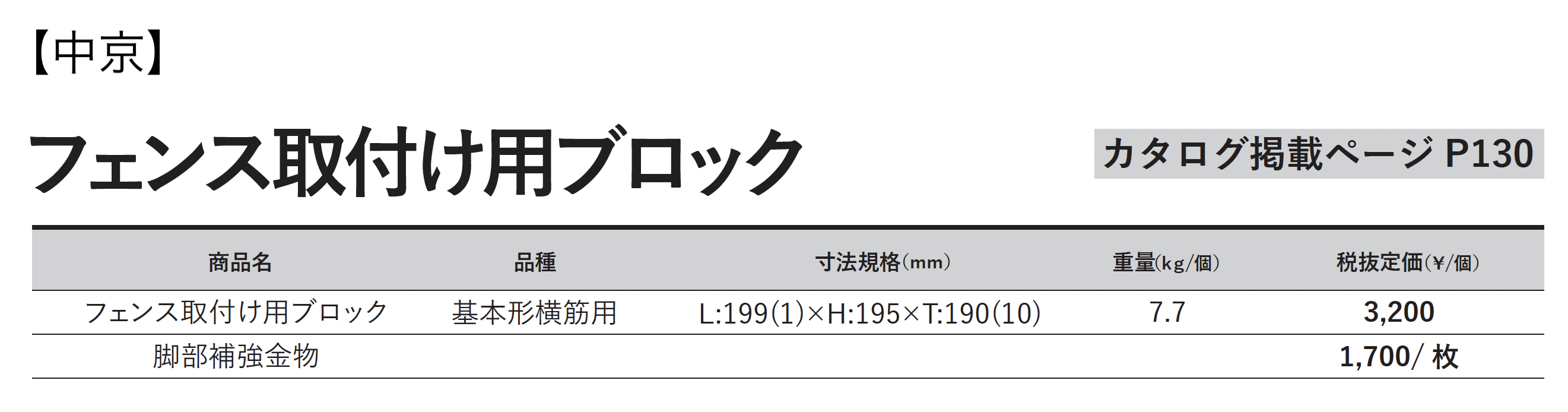 | 新旧品 | フェンス取付け⽤ブロック【2025年版】(EXTERIOR CATALOG 2025-2026)フェンス取付け⽤ブロック【2024年版】(EXTERIOR CATALOG 2024-2025)フェンス取付け⽤ブロック【2023年版】(エクステリアカタログ【Vol.1】) |