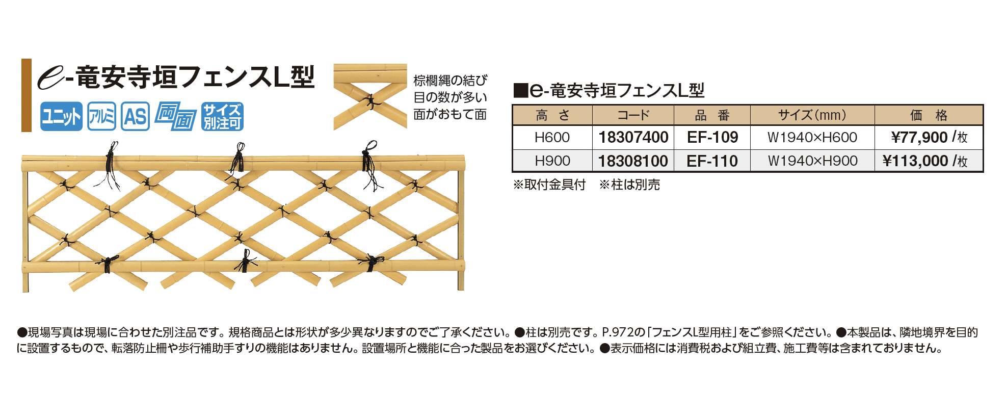 | 新旧品 | e-竜安寺垣フェンスL型(プロガーデンエクステリア総合カタログPROEX2025)e-竜安寺垣フェンスL型【2024年版】(プロガーデンエクステリア総合カタログ PROEX2024) |