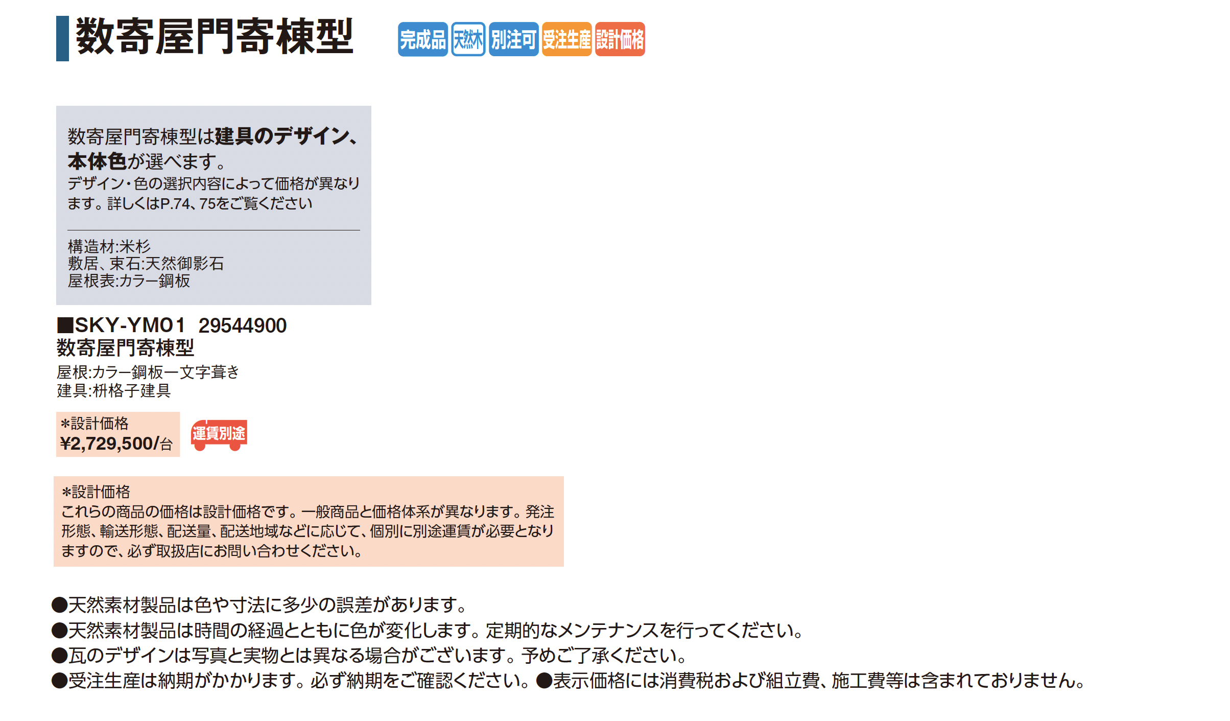 | 新旧品 | 数寄屋門 寄棟型(プロガーデンエクステリア総合カタログPROEX2025)数寄屋門 寄棟型【2024年版】(プロガーデンエクステリア総合カタログ PROEX2024) |