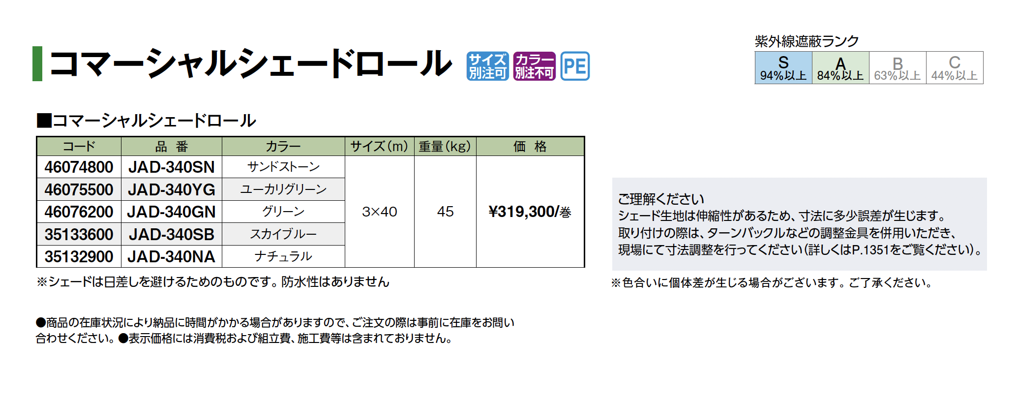 | 新旧品 | コマーシャルシェードロール(プロガーデンエクステリア総合カタログPROEX2025)コマーシャルシェードロール【2024年版】(プロガーデンエクステリア総合カタログ PROEX2024) |