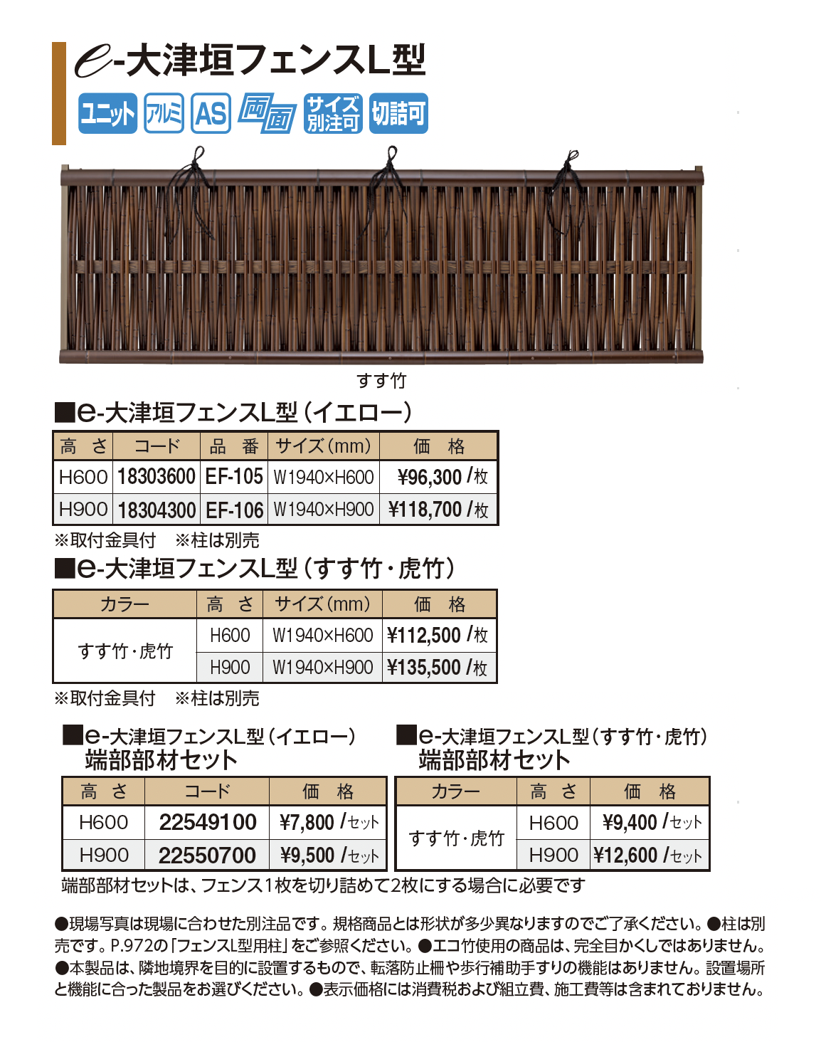 | 新旧品 | e-大津垣フェンスL型(プロガーデンエクステリア総合カタログPROEX2025)e-大津垣フェンスL型【2024年版】(プロガーデンエクステリア総合カタログ PROEX2024) |