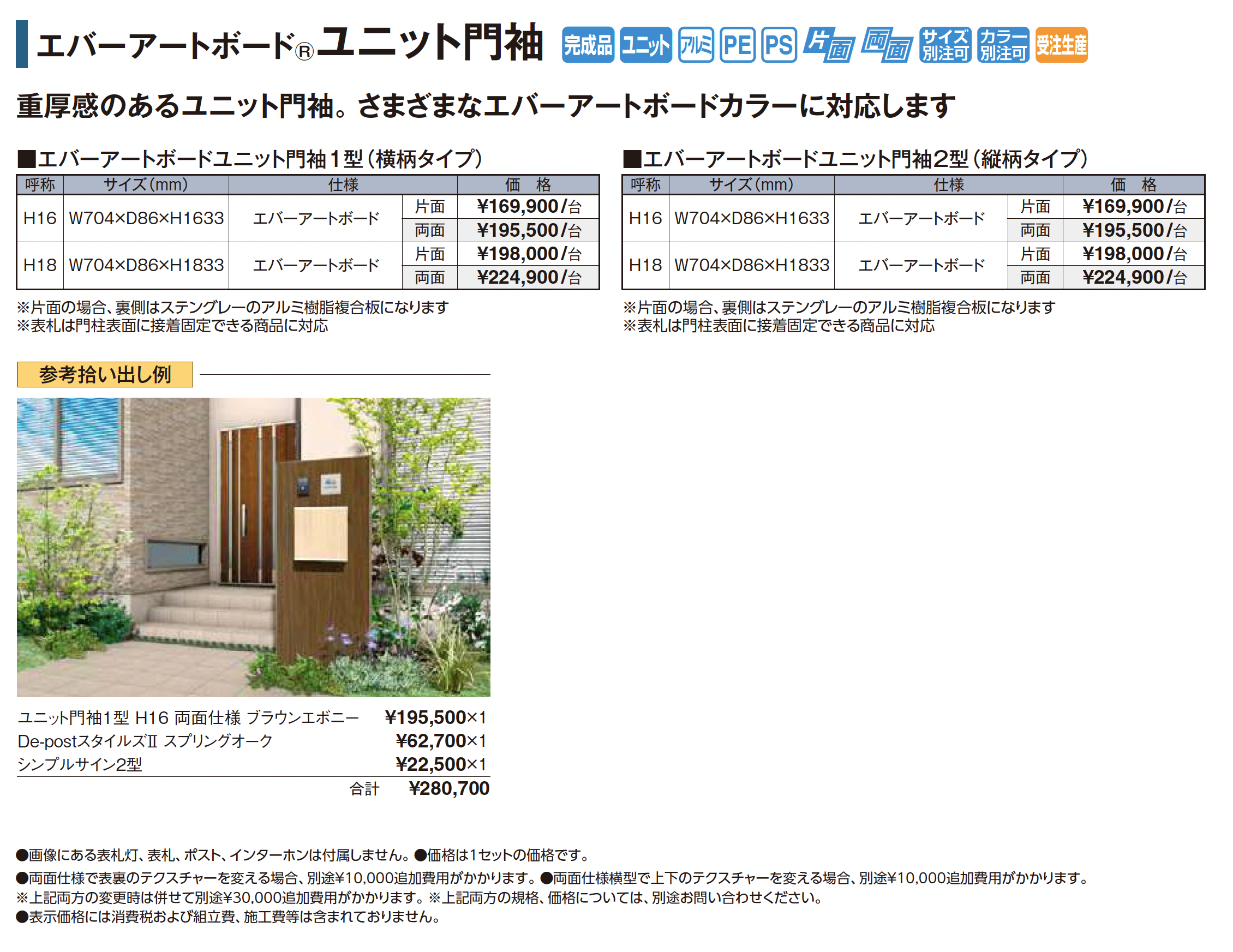 | 新旧品 | エバーアートボード®︎ ユニット門袖(プロガーデンエクステリア総合カタログPROEX2025)エバーアートボード®︎ ユニット門袖【2024年版】(プロガーデンエクステリア総合カタログ PROEX2024) |
