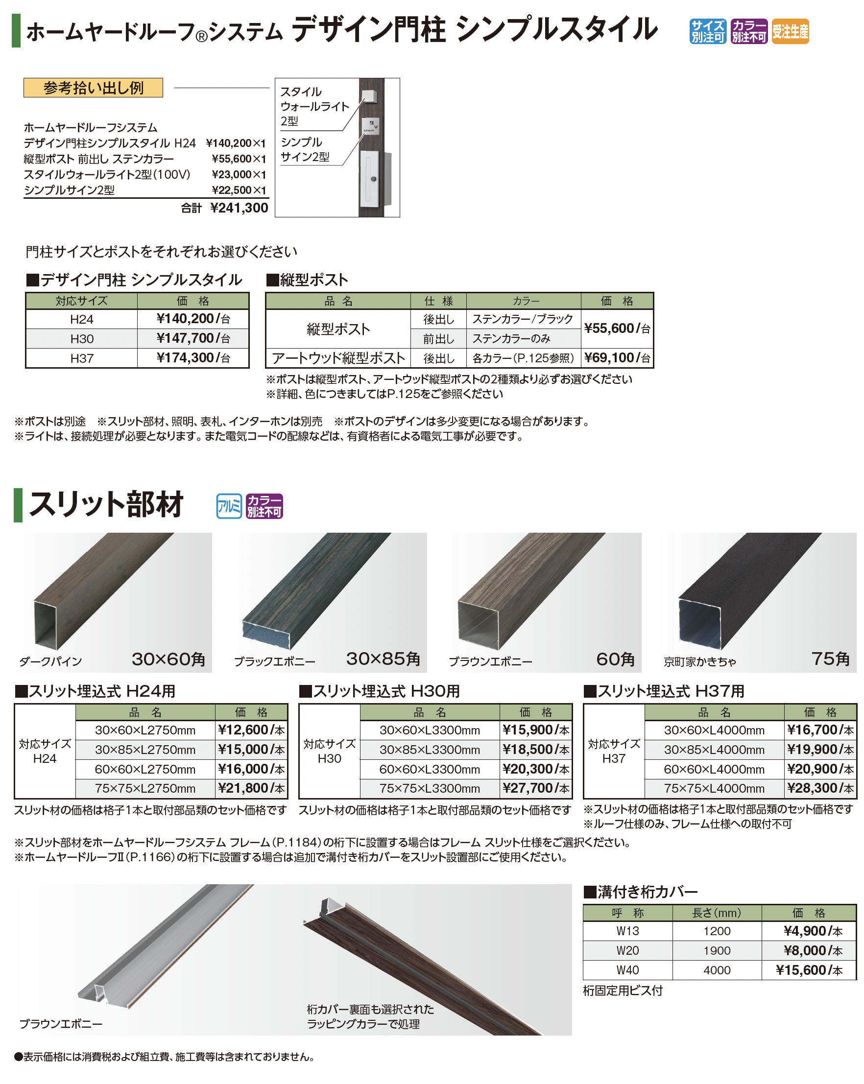 | 新旧品 | ホームヤードルーフ®システム デザイン門柱 シンプルスタイル(プロガーデンエクステリア総合カタログPROEX2025)ホームヤードルーフ®システム デザイン門柱 シンプルスタイル【2024年版】(プロガーデンエクステリア総合カタログ PROEX2024) |