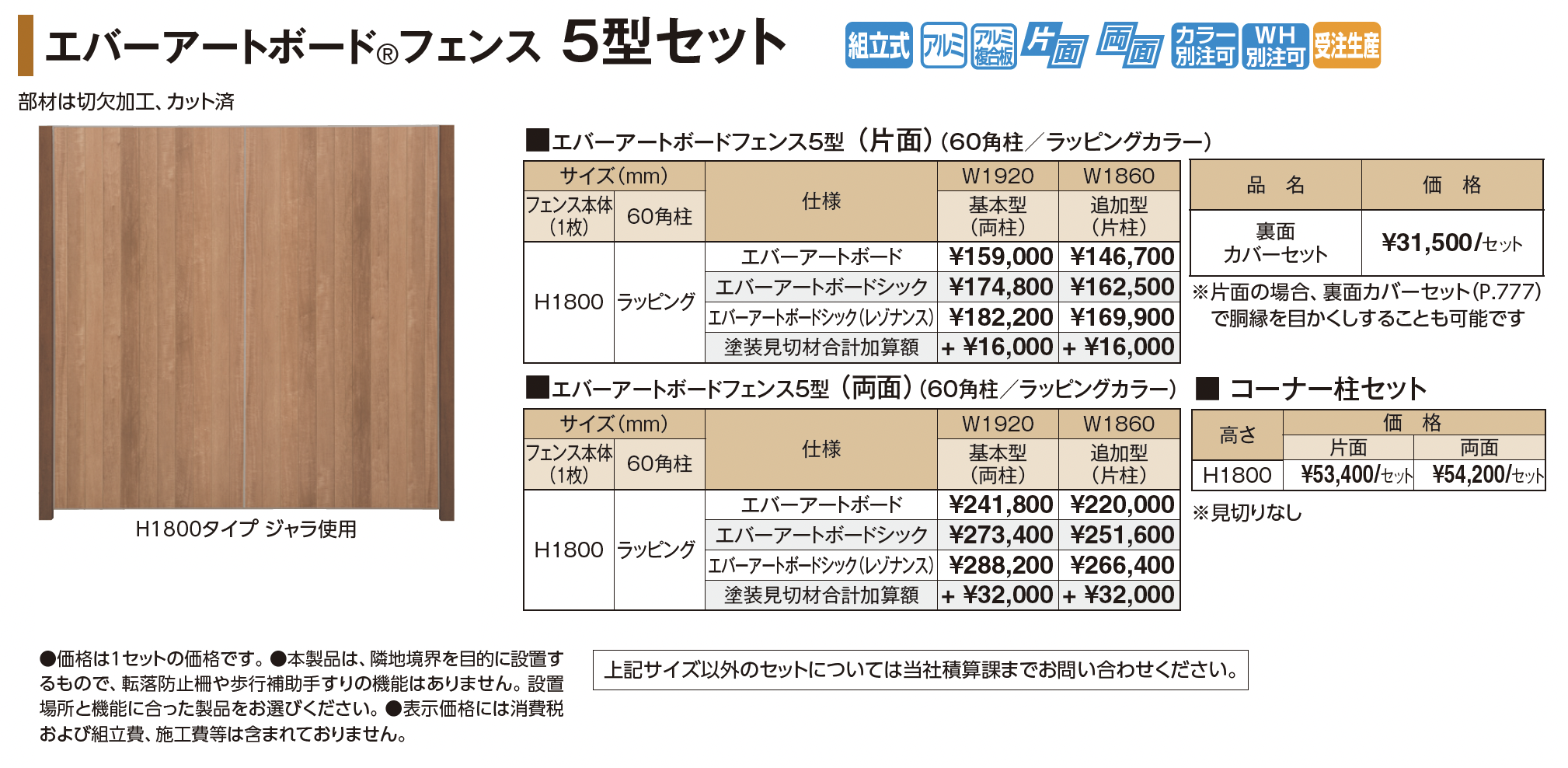 | 新旧品 | エバーアートボード®フェンス5型セット(プロガーデンエクステリア総合カタログPROEX2025)エバーアートボード®フェンス5型セット【2024年版】(プロガーデンエクステリア総合カタログ PROEX2024) |