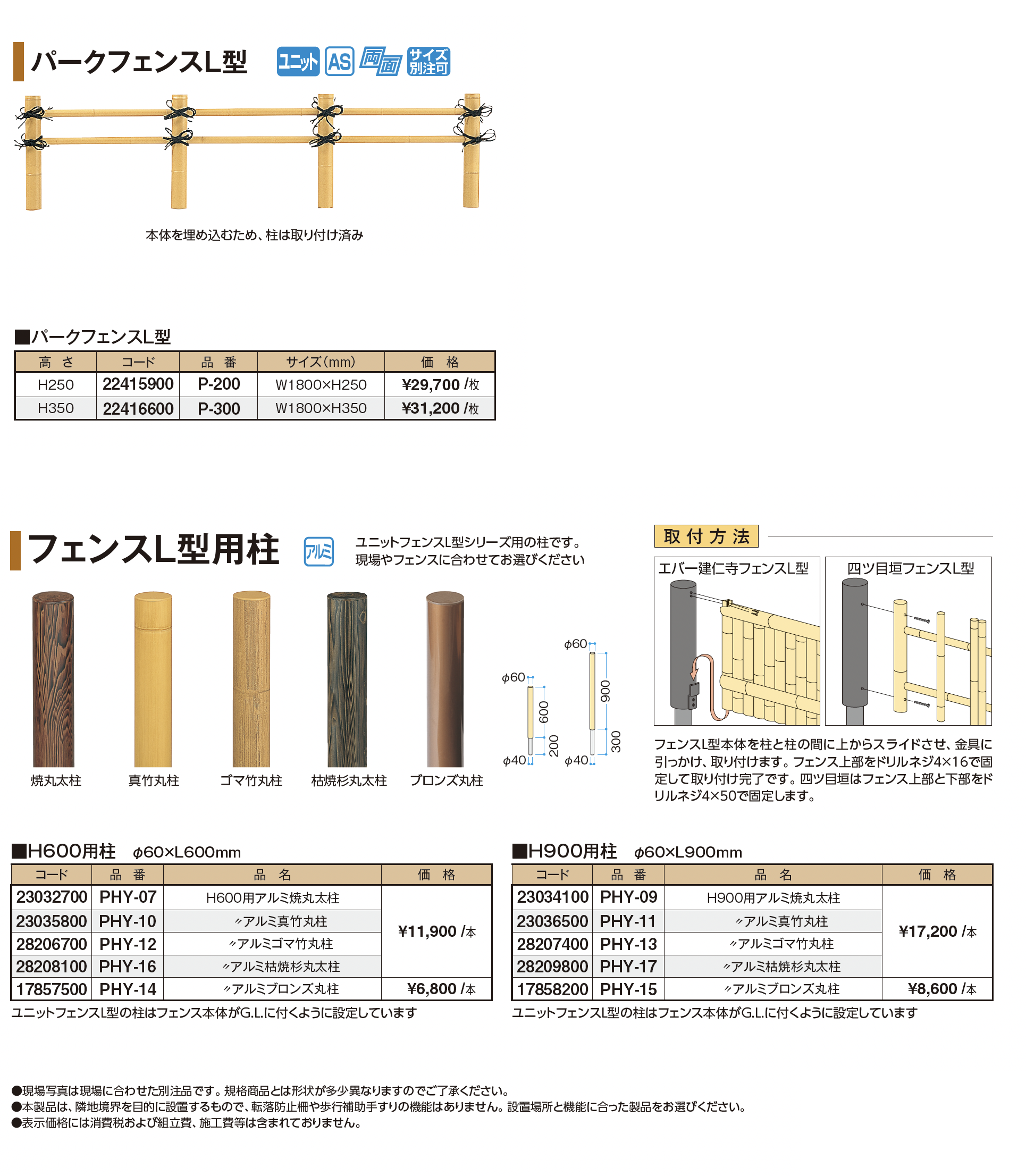 | 新旧品 | パークフェンスL型(プロガーデンエクステリア総合カタログPROEX2025)パークフェンスL型【2024年版】(プロガーデンエクステリア総合カタログ PROEX2024) |