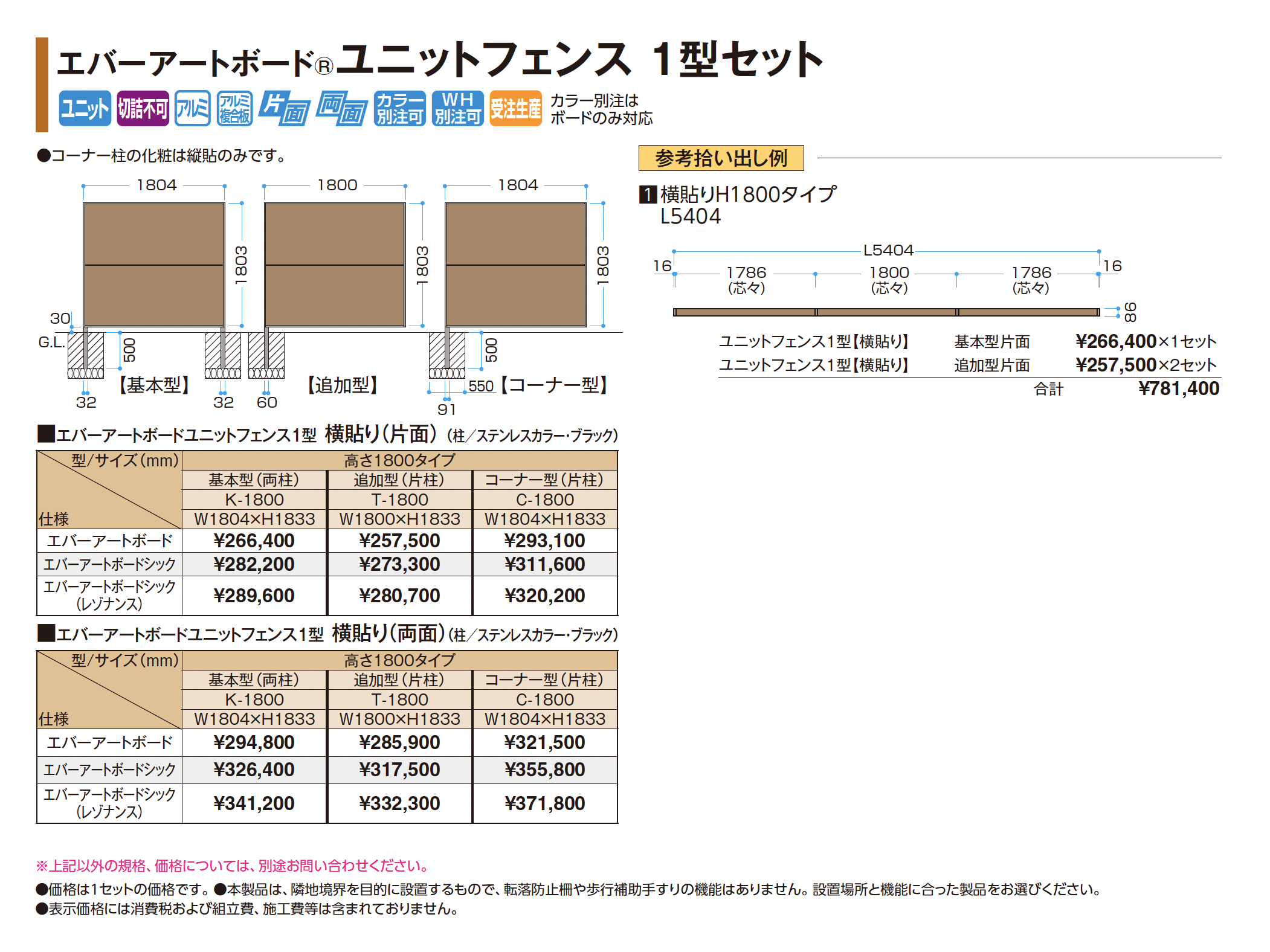 | 新旧品 | エバーアートボード®ユニットフェンス1型セット(プロガーデンエクステリア総合カタログPROEX2025)エバーアートボード®ユニットフェンス1型セット【2024年版】(プロガーデンエクステリア総合カタログ PROEX2024) |