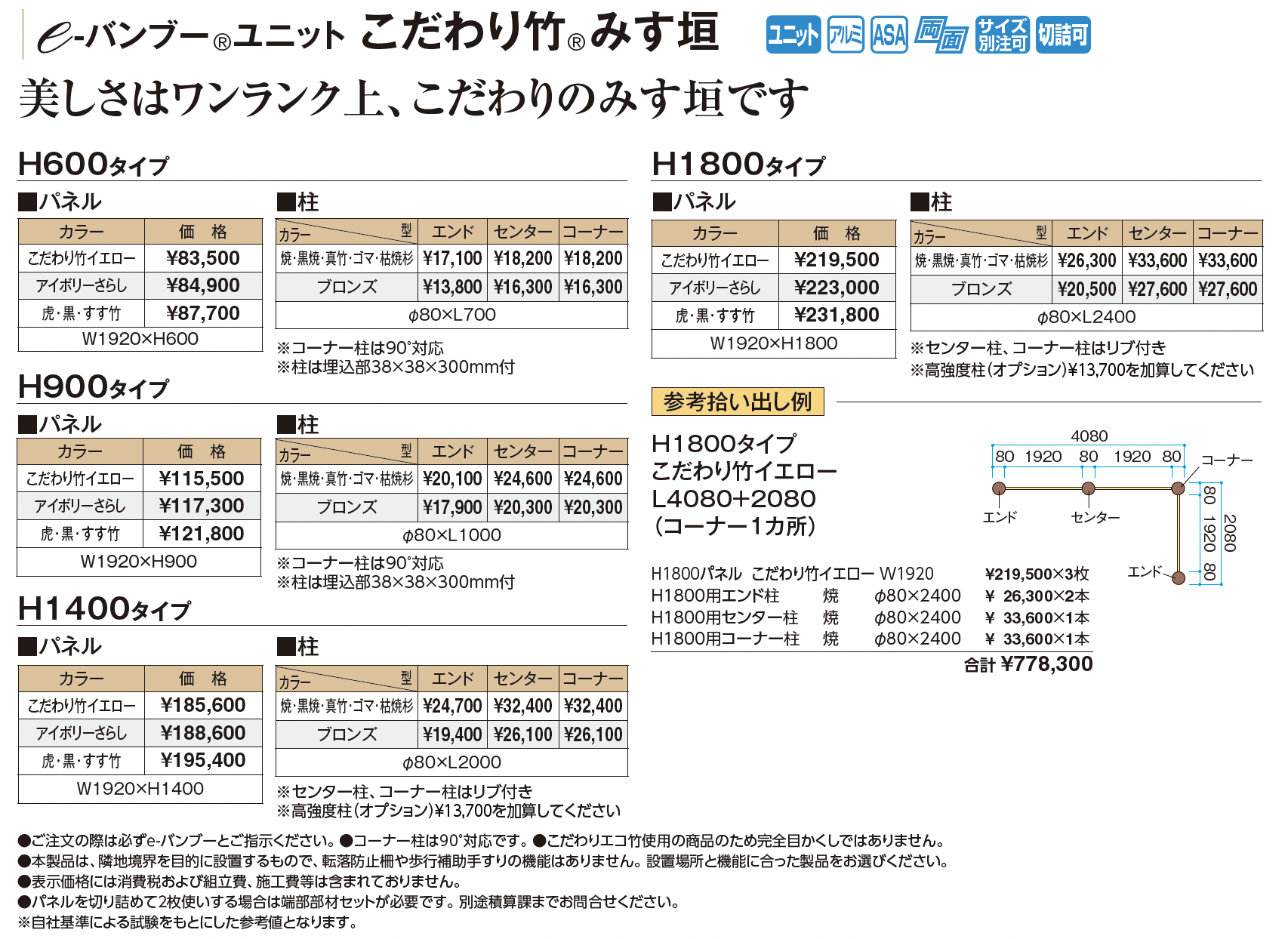 | 新旧品 | e-バンブー®︎ユニット こだわり竹®︎みす垣(プロガーデンエクステリア総合カタログPROEX2025)e-バンブー®︎ユニット こだわり竹®︎みす垣【2024年版】(プロガーデンエクステリア総合カタログ PROEX2024) |
