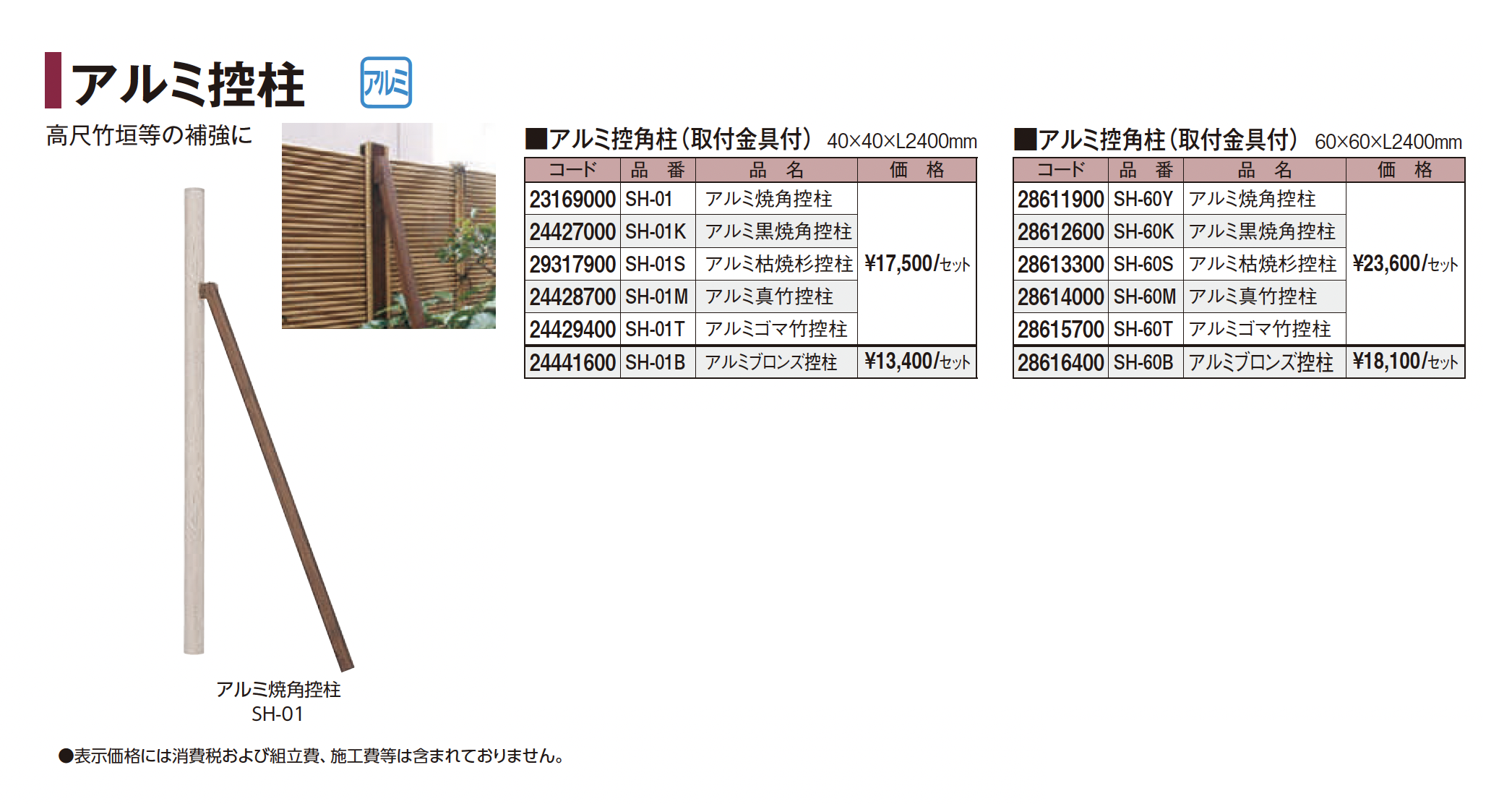 | 新旧品 | エバーバンブー®︎ アルミ控柱(プロガーデンエクステリア総合カタログPROEX2025)エバーバンブー®︎ アルミ控柱【2024年版】(プロガーデンエクステリア総合カタログ PROEX2024) |