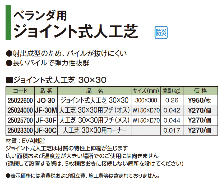ベランダ用 ジョイント式人工芝